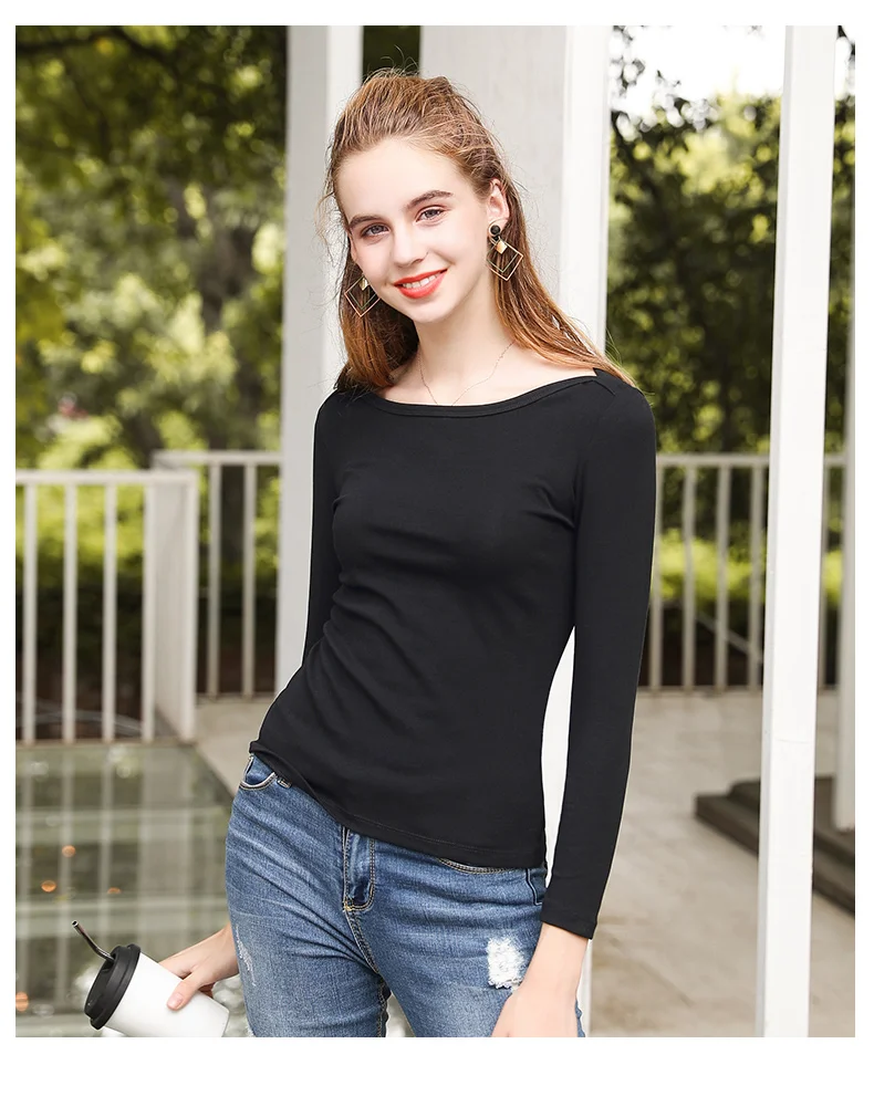Футболка женская с воротником-лодочкой, мягкая однотонная хлопковая рубашка с коротким рукавом, подходит к любой одежде, на лето