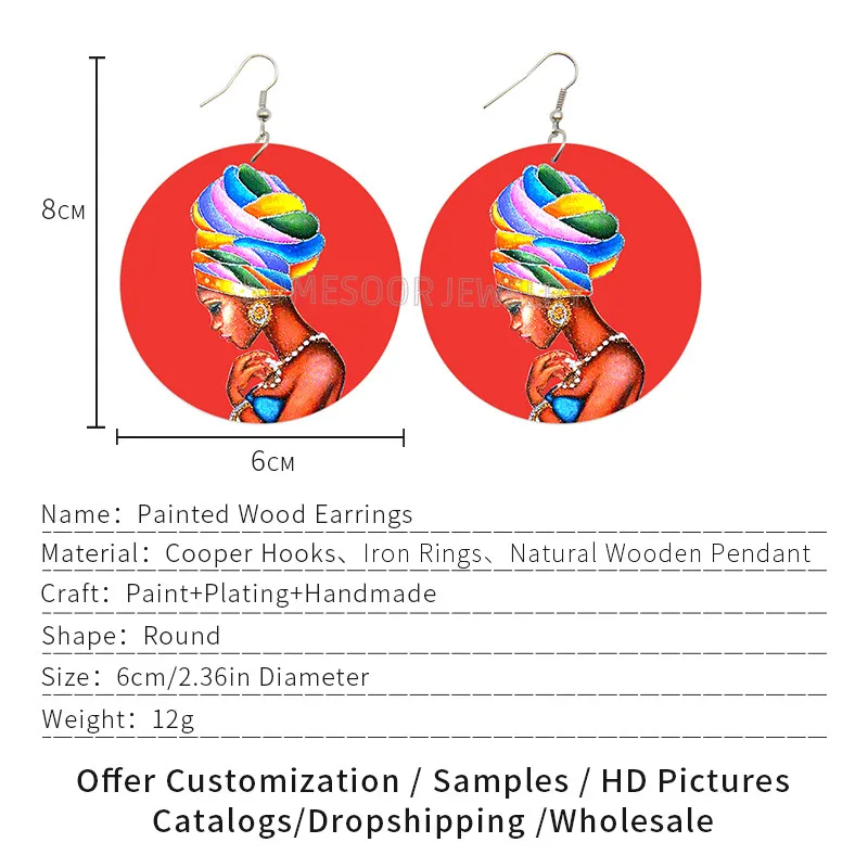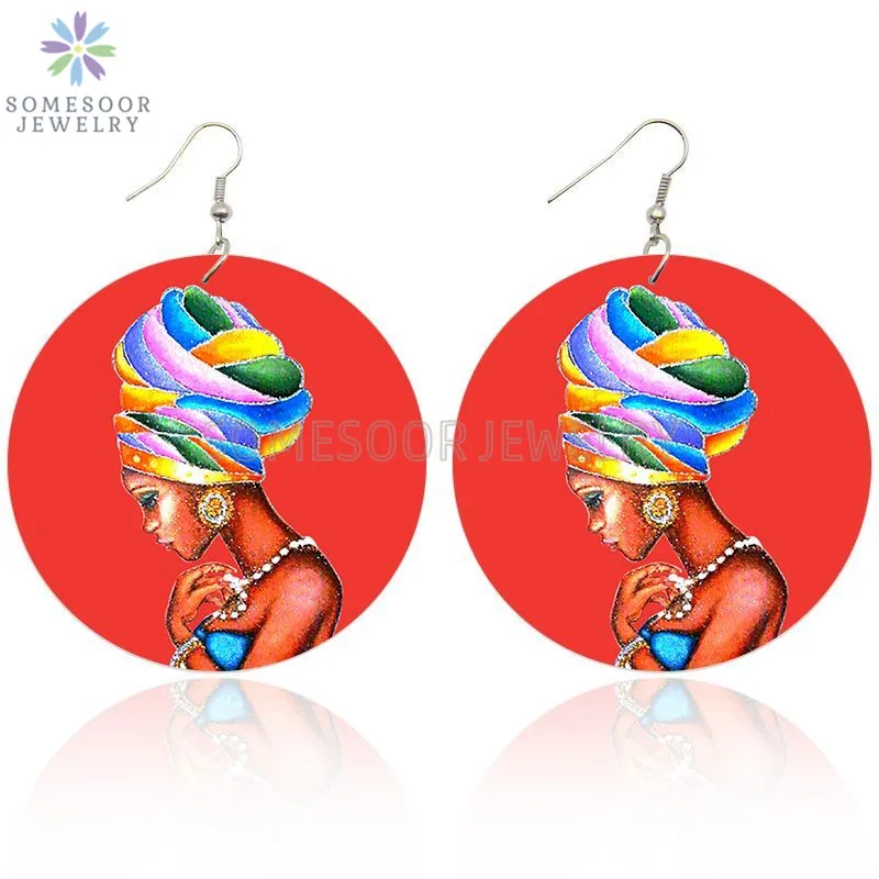 SOMESOOR афро Этническая головная Повязка Женская в красном принте деревянные висячие серьги черные племенные искусства подвеска ювелирные изделия для женщин подарок