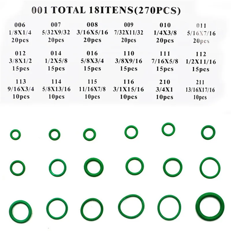 Комплект уплотнительных колец из зеленой резины, 18 размеров, 270 ш...