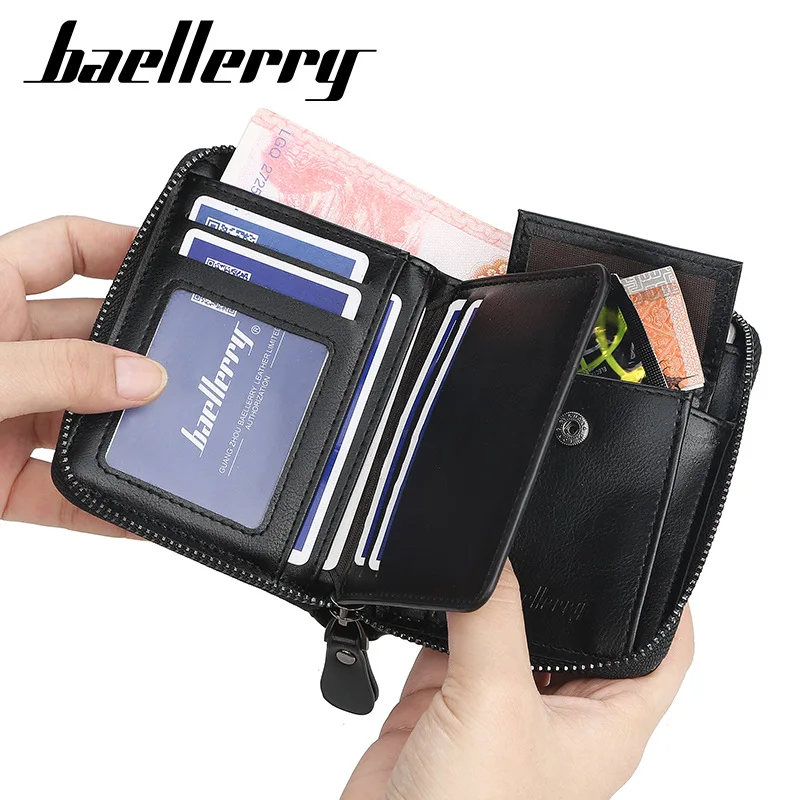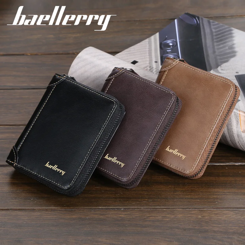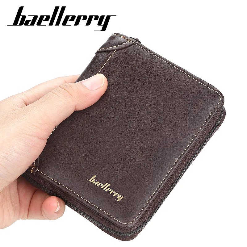 Короткий Мужской кошелек от известного бренда на молнии, клатч, Сумочка для мужчин, бумажник из искусственной кожи для мелочи, кредитница