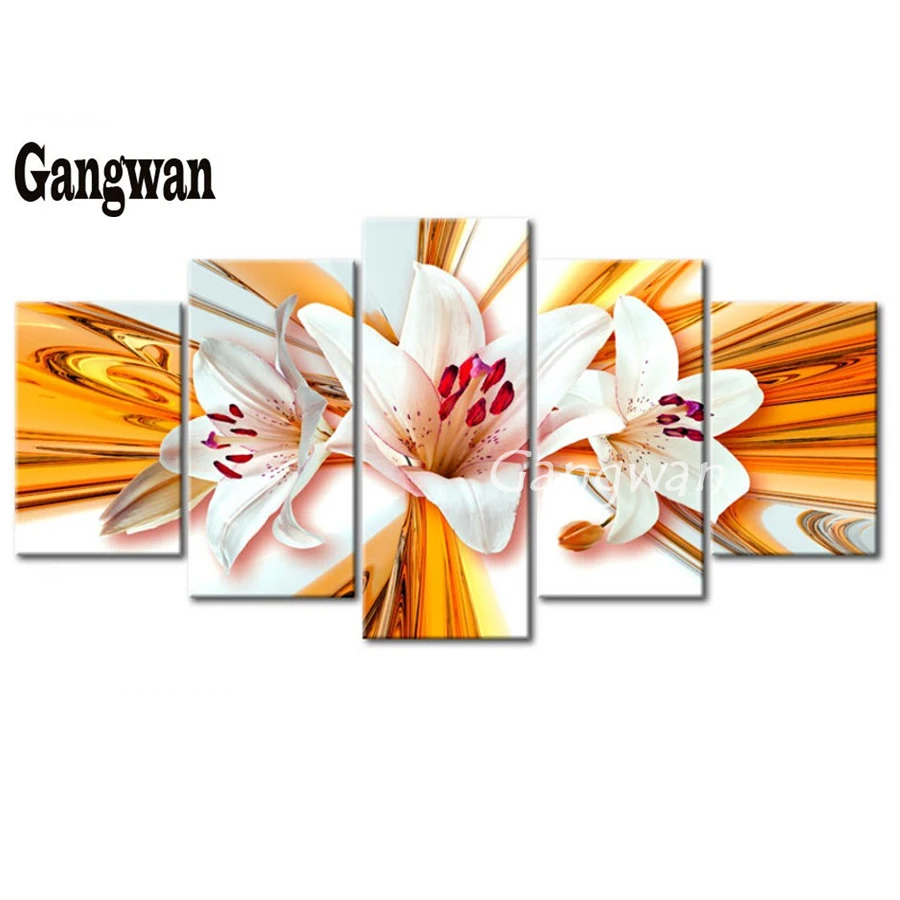 5D круглая дрель DIY Алмазная вышивка белые цветы лилии Алмазная Картина Вышивка крестом мозаика полностью квадратные Стразы 5 шт. искусство