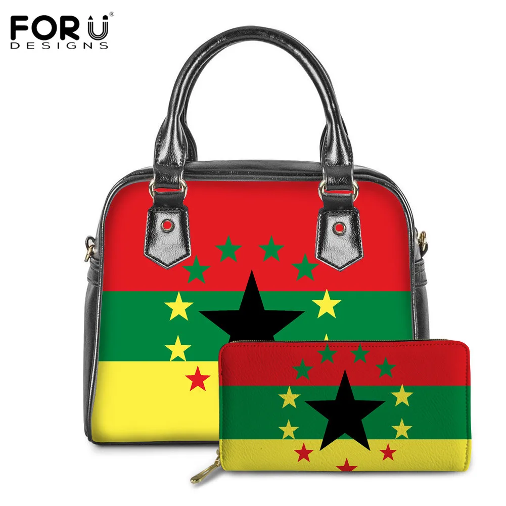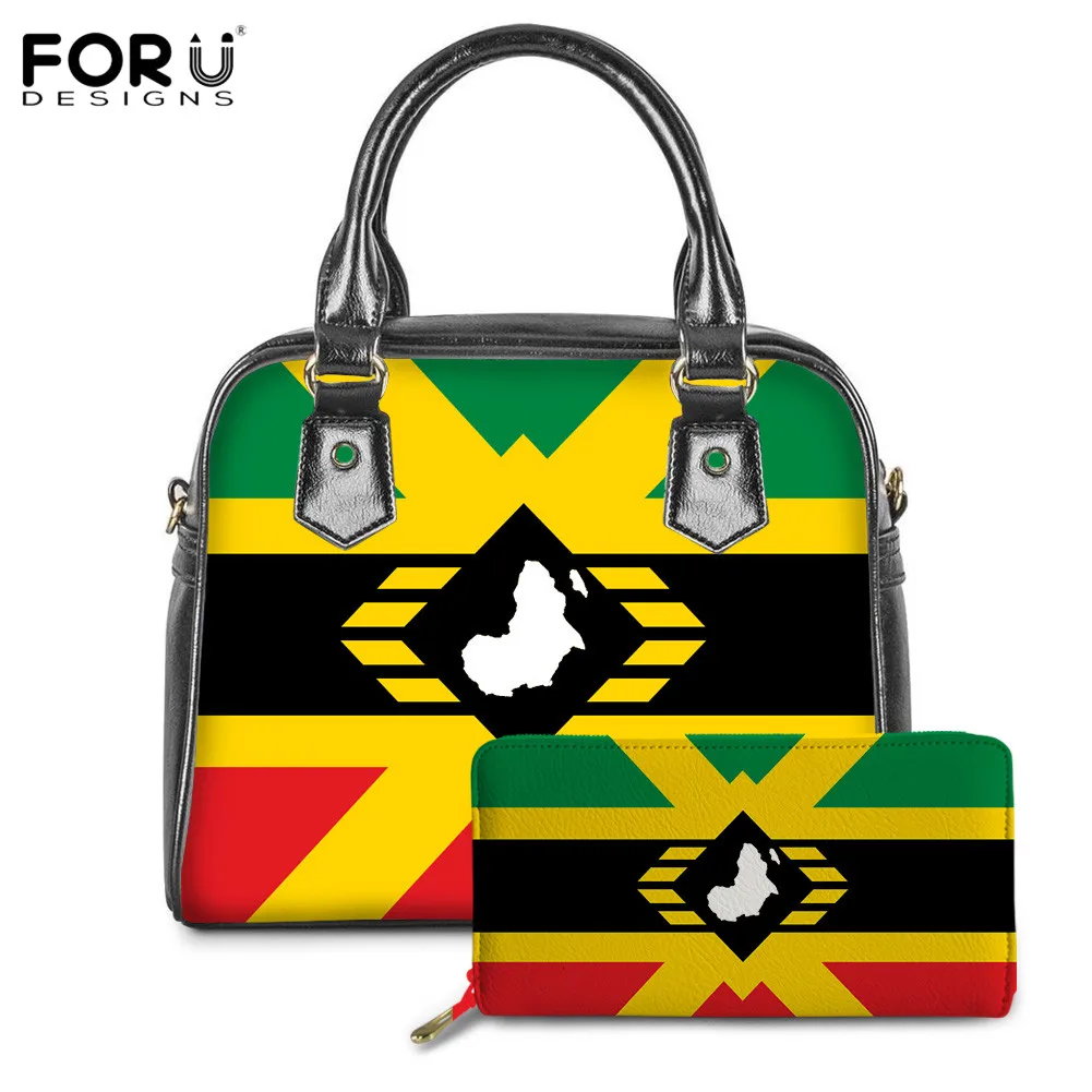 FORUDESIGNS, женские сумки с Африканским принтом флага UNIA, 2 шт., роскошные брендовые Наплечные сумки с верхней ручкой, Женская Повседневная Сумка-тоут из ПУ кожи и кошелек