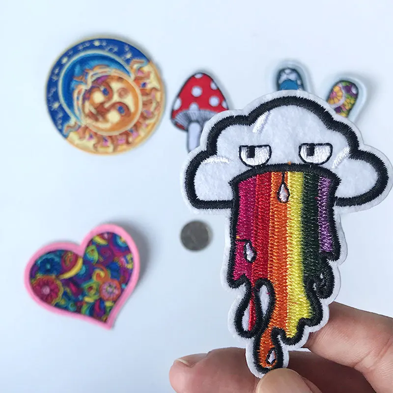 Красочный хип-хоп стиль любовь мир V жест Солнце Луна гриб вышивка клей Хиппи Патч
