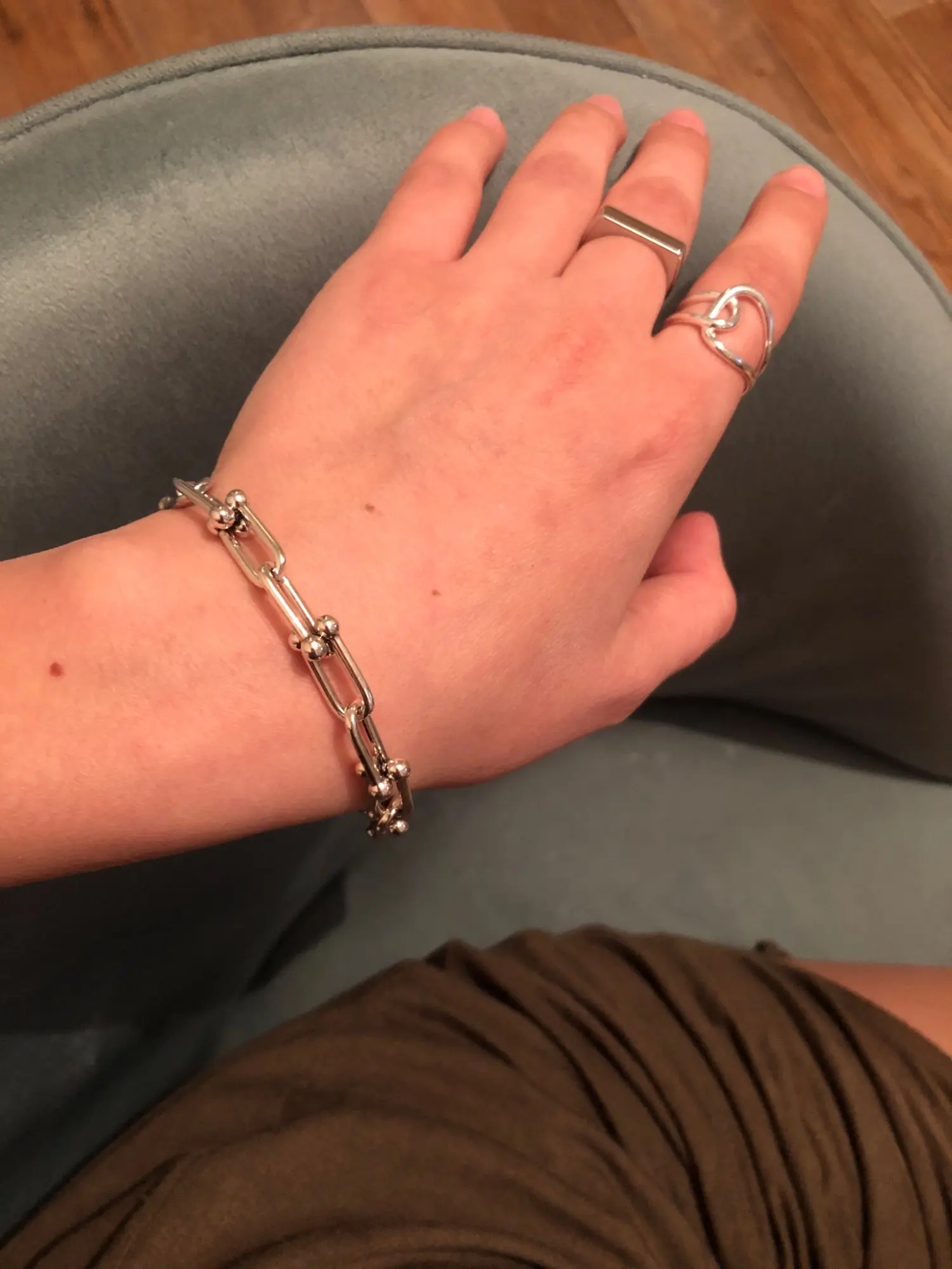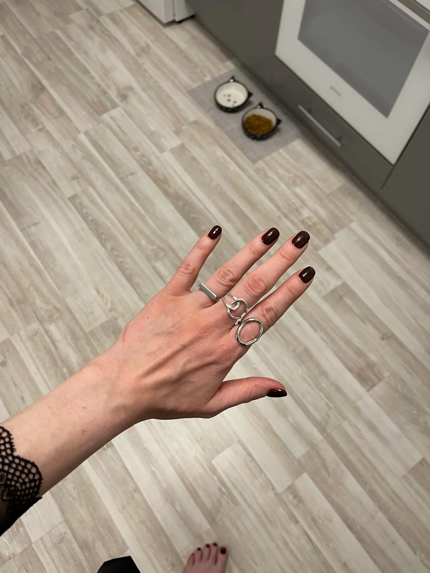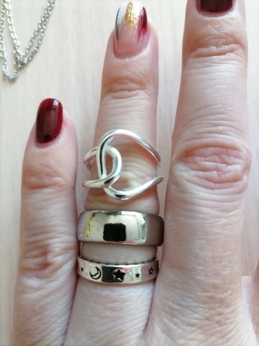 Люблю это кольцо! Очень стильное! при необходимости- регулируется размер. За время носки не потемнело. Очень довольна покупкой!