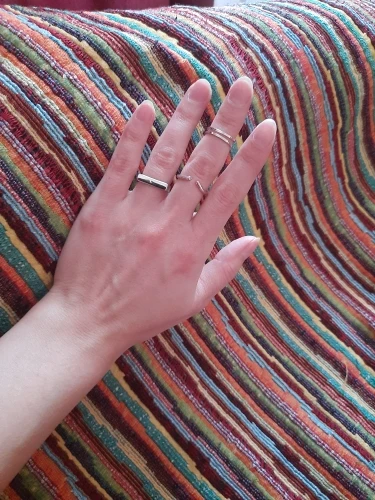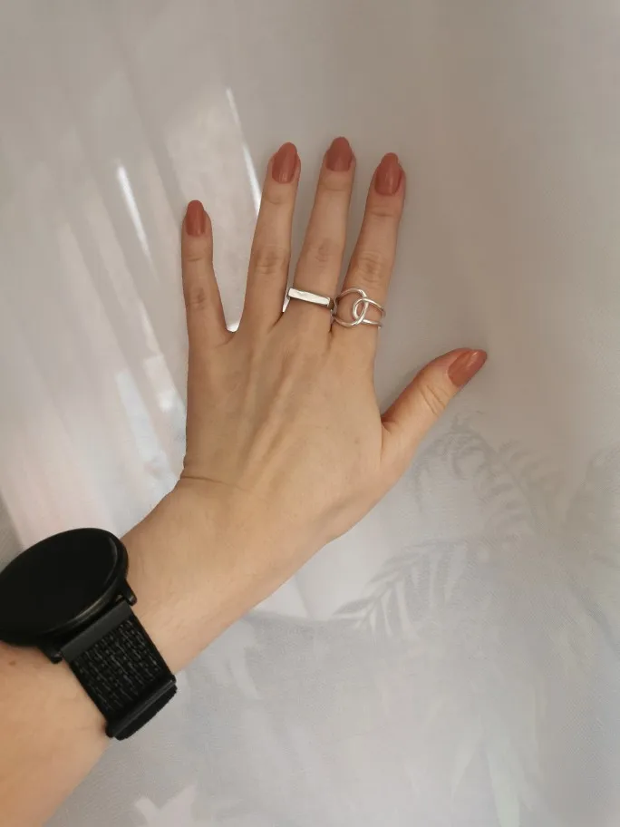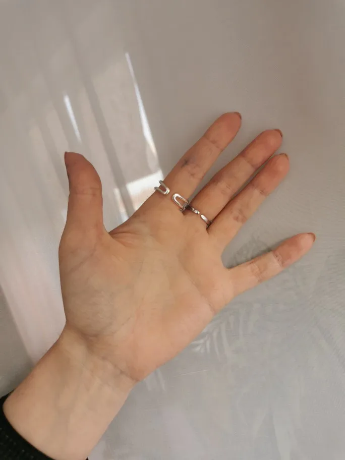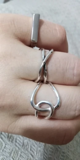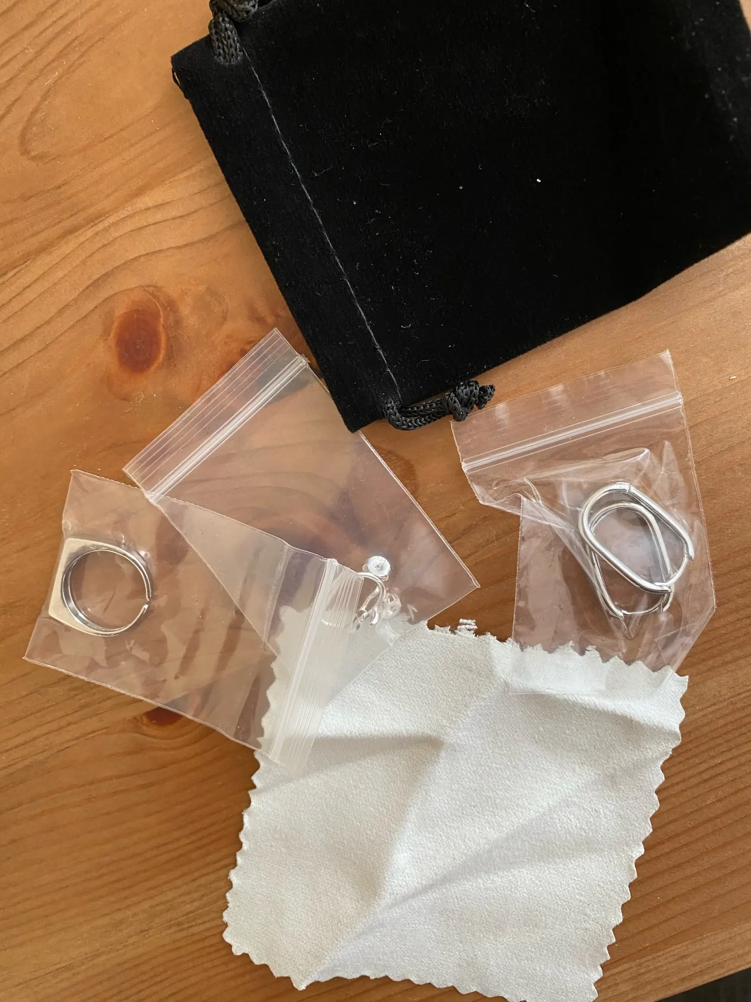 Хороший товар, пришли за 2 недели в Новосибирск, упакованы в индивидуальные зип пакетики, продавец положил салфетку и один бархатный мешочек. Кольца регулируются, но подойдут на размер 15-18 примерно в этом диапазоне. Не думаю, что это серебро из за цены, но проба стоит, красивые, стильные за свою цену так вообще. Лишь бы не почернели, дополню отзыв если почернеют)
