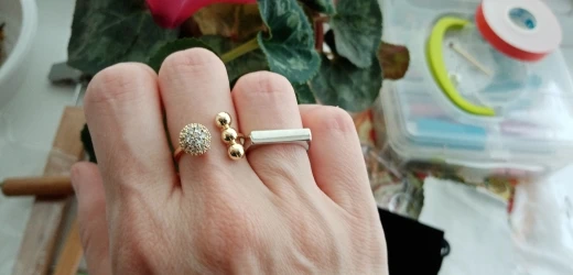 Очень симпатичное колечко. Отлично смотрится на руке. Размер регулируется. Доставка средняя по сроку