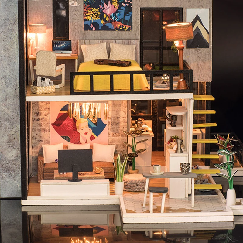Кукольный домик Миниатюрный горячая Распродажа сделай сам, деревянный миниатюрный дом для кукол с набором мебели, вилла, светодиодная подсветка, подарок на день рождения, K033