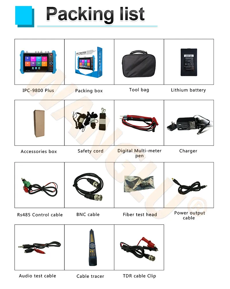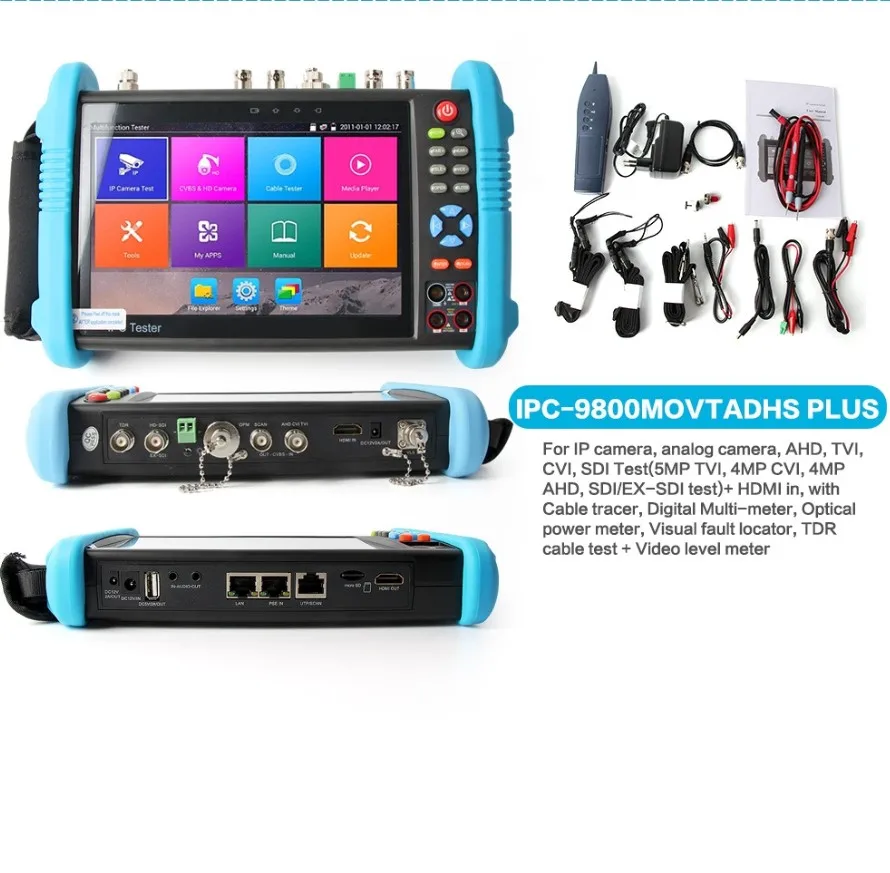 Модель: IPC-9800MOVTADHS Plus (полный вариант):FИли IP + аналоговый + AHD + HD-TVI + CVI + SDI Тест камеры + цифровой мультиметр + оптический измеритель мощности + Визуальный дефектоскоп + TDR тест кабеля + видео-измеритель уровня + кабель tracer + RJ45 кабель TDR тест + HDMI вход/выход