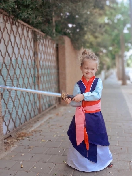 Красивое платье. Меч изготовлен из стали, слишком опасен для ребенка imo.