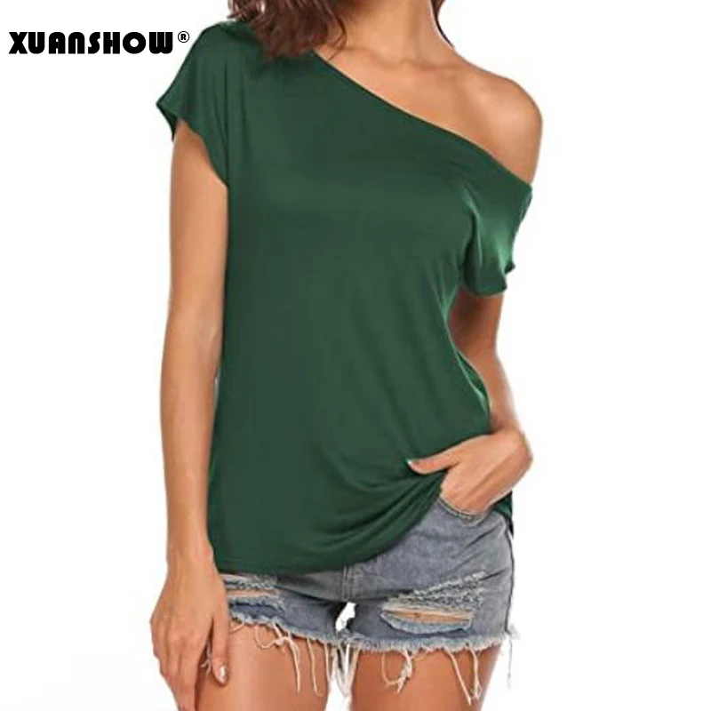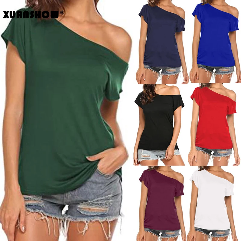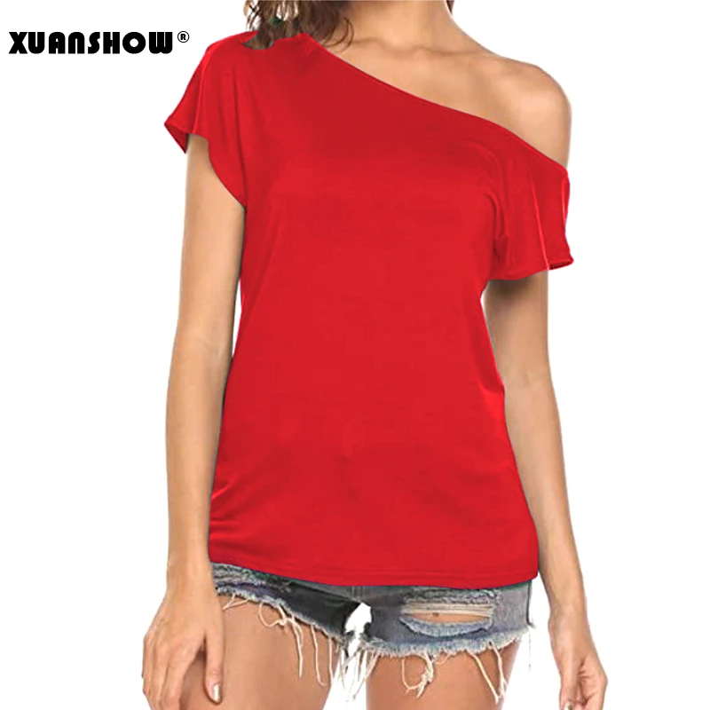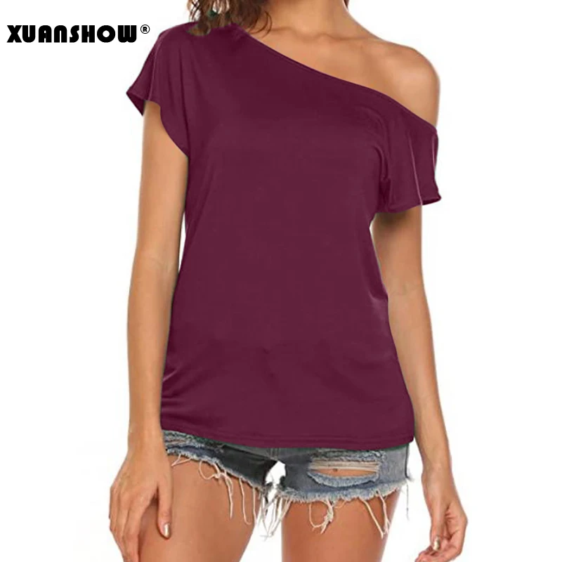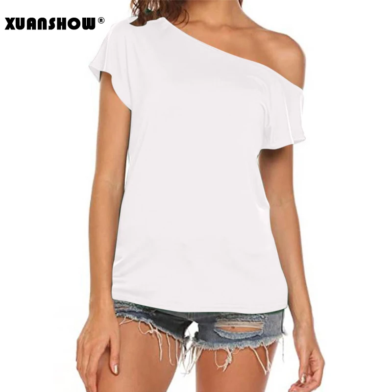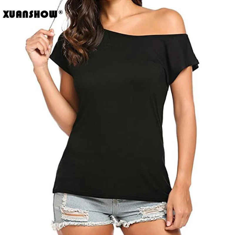 XUANSHOW 2021 модная женская футболка Повседневный Топ с открытыми плечами футболки с коротким рукавом Свободный Летний Топ Футболка женская одежда