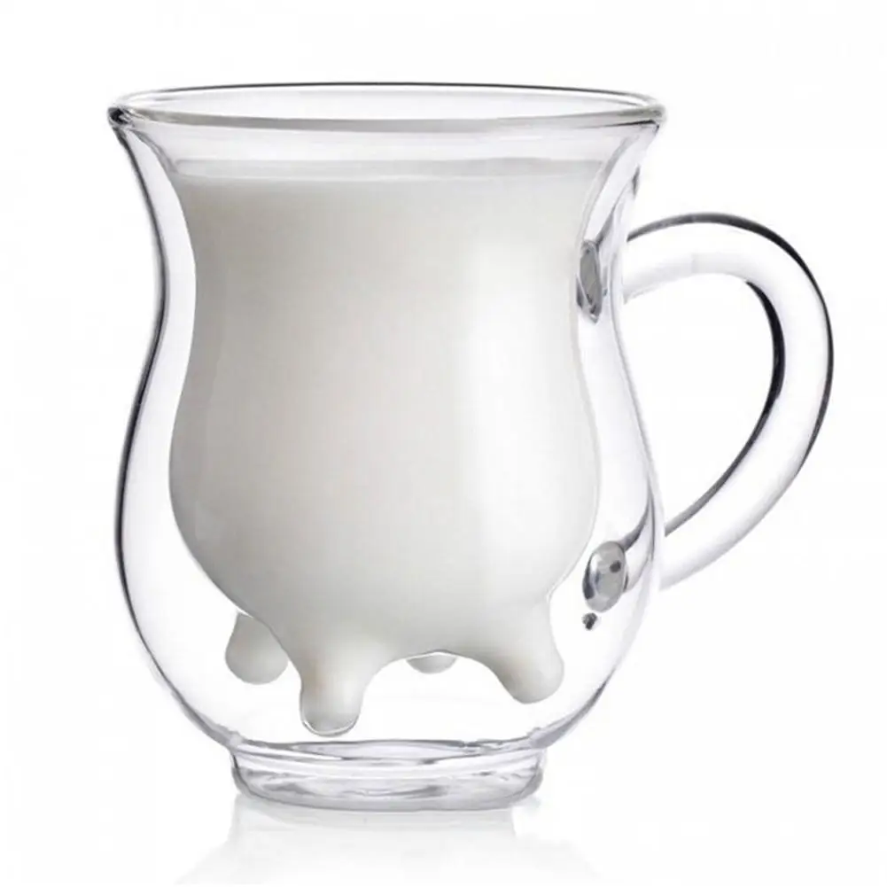 Креативная Милая кружка для молока 300 мл, двухслойная термостойкая стеклянная чашка для сока, кофе, посуда для напитков, чашка для молока, сока, подарок для детей