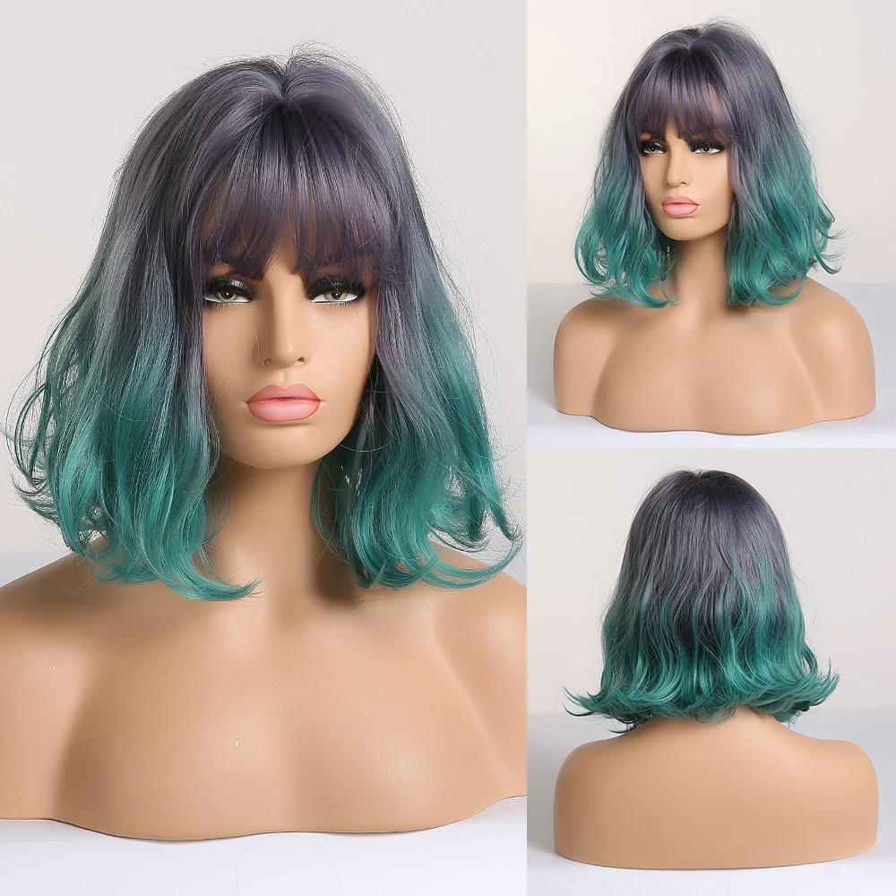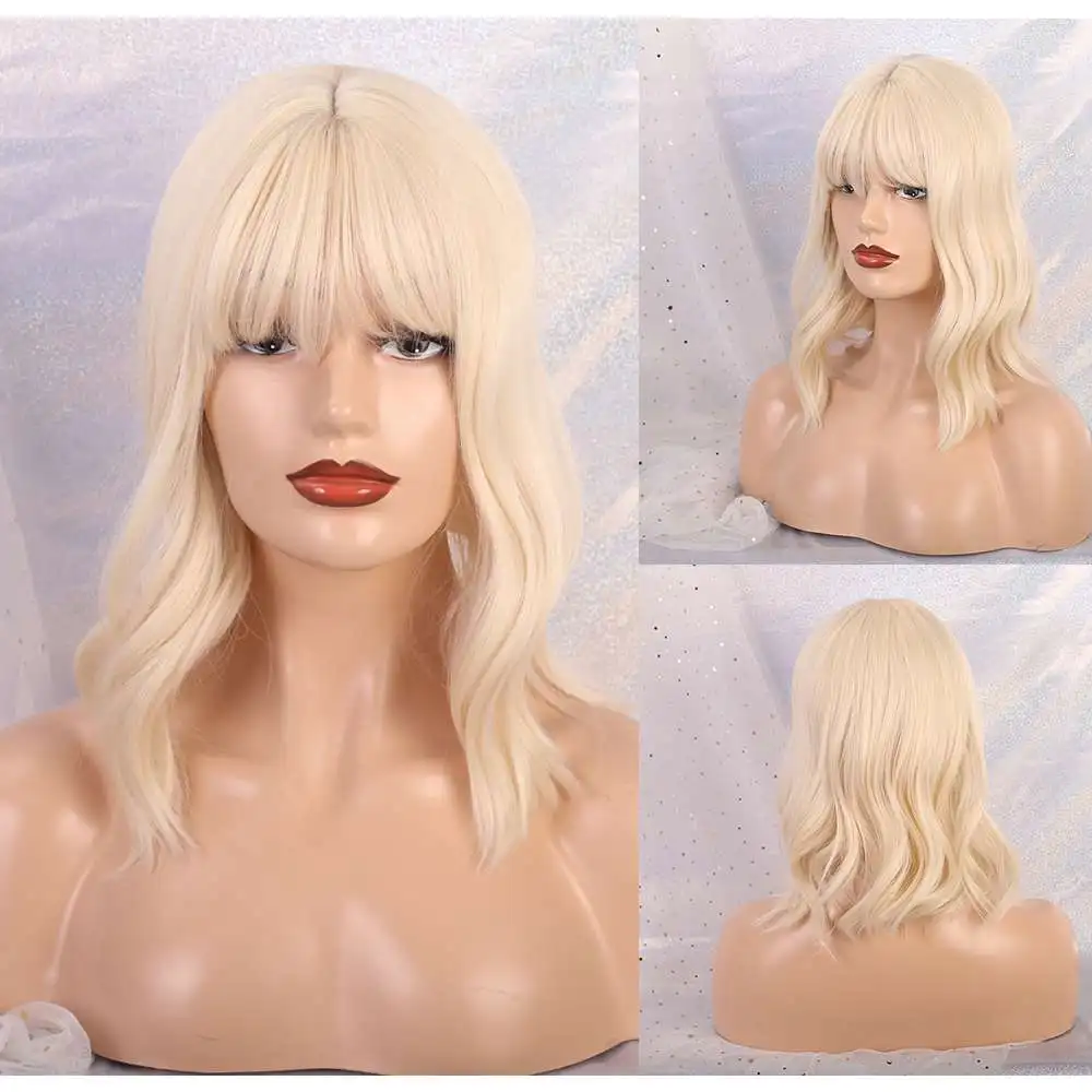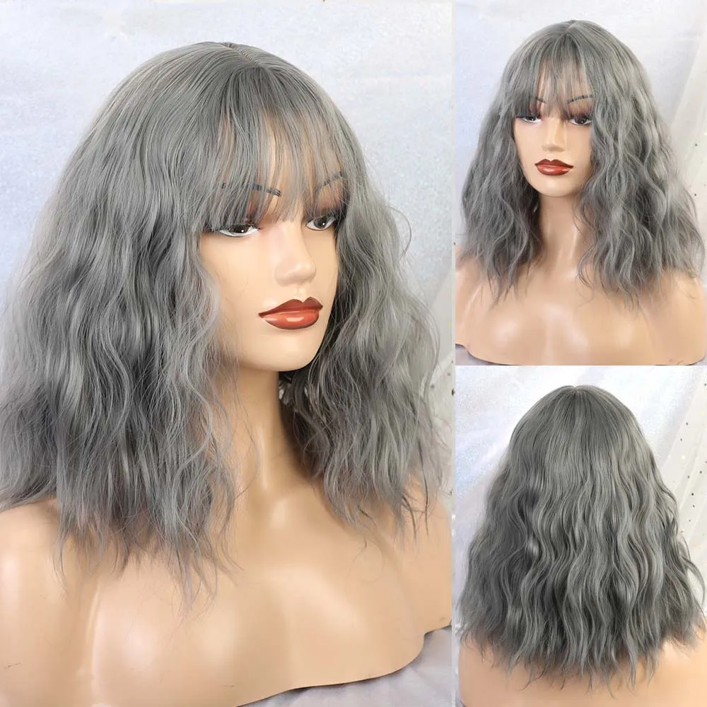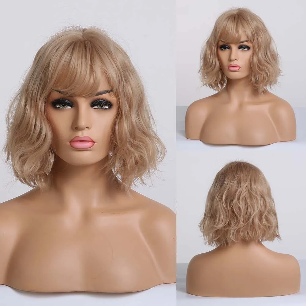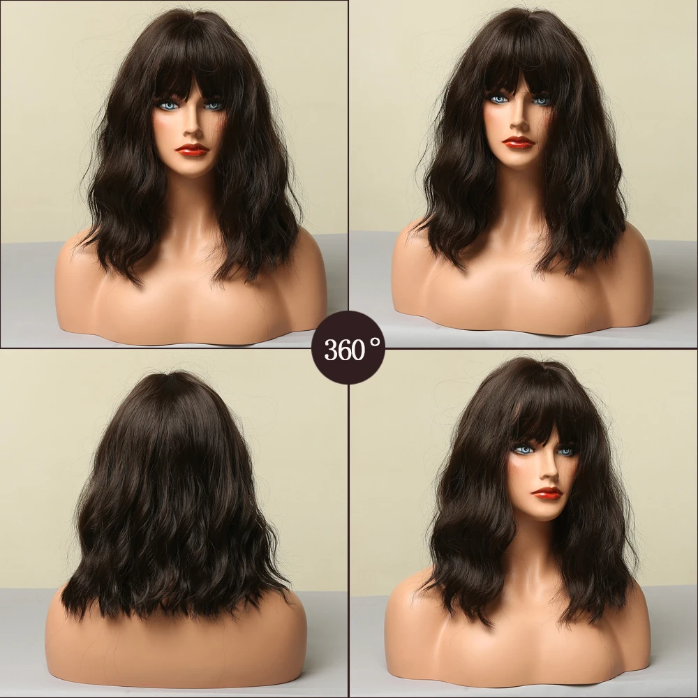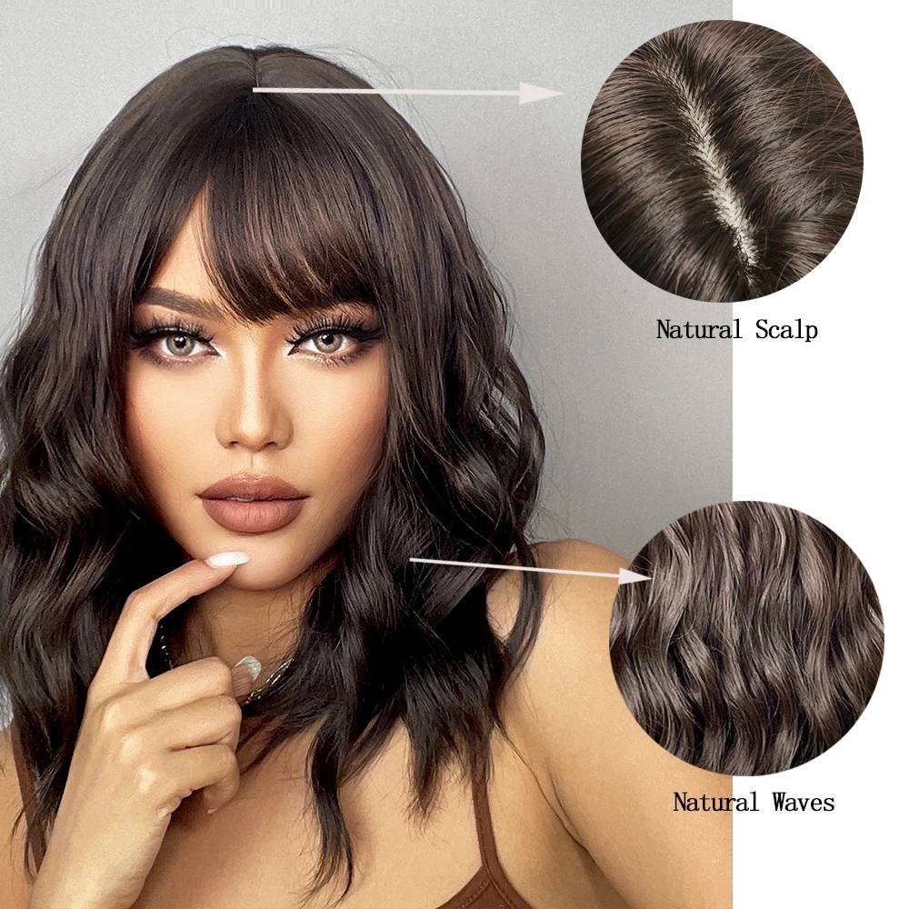 Короткие синтетические парики LOUIS FERRE для женщин, косплей из натуральных волос с волнистыми волосами, длина плеч, Женский коричневый парик с челкой