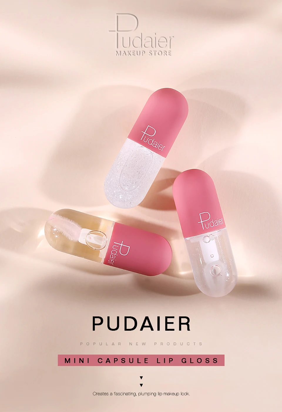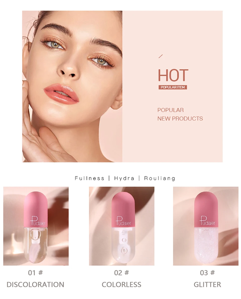 Pudaier губная помада для увеличения объема губ, Увлажняющая губная помада с блестками, меняющая цвет, для восстановления губ