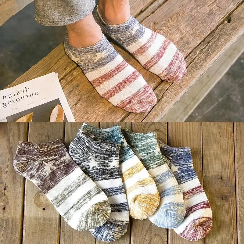 5 пар в комплекте; эластичные дышащие носки с цветным узором; удобные носки унисекс в полоску из полиэстера; тапочки; короткий носок хлопчатобумажный