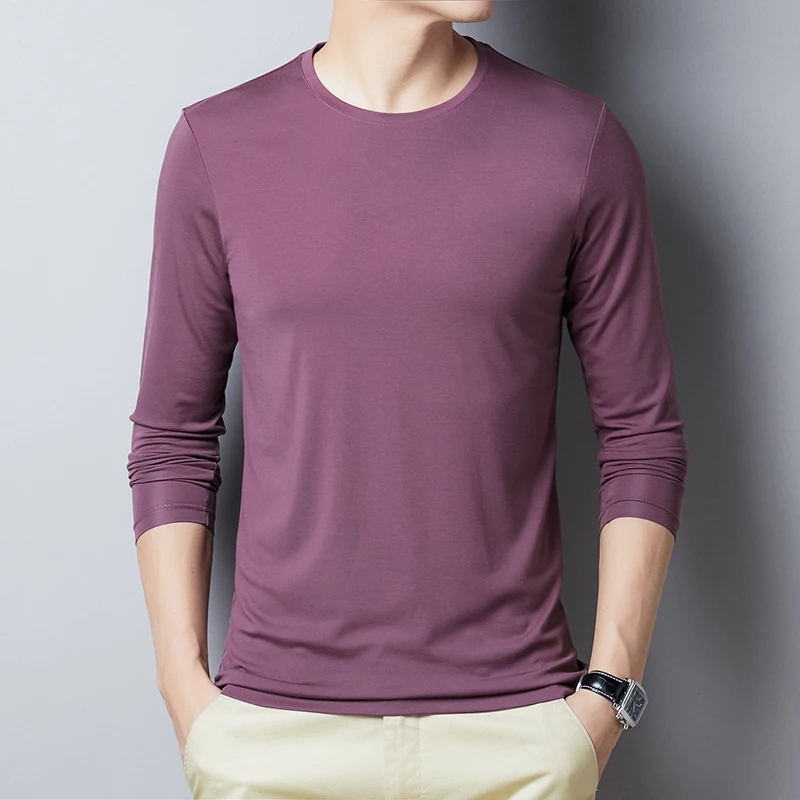 Футболка мужская хлопковая с длинным рукавом, модная однотонная приталенная, одежда для мужчин, T892, весна