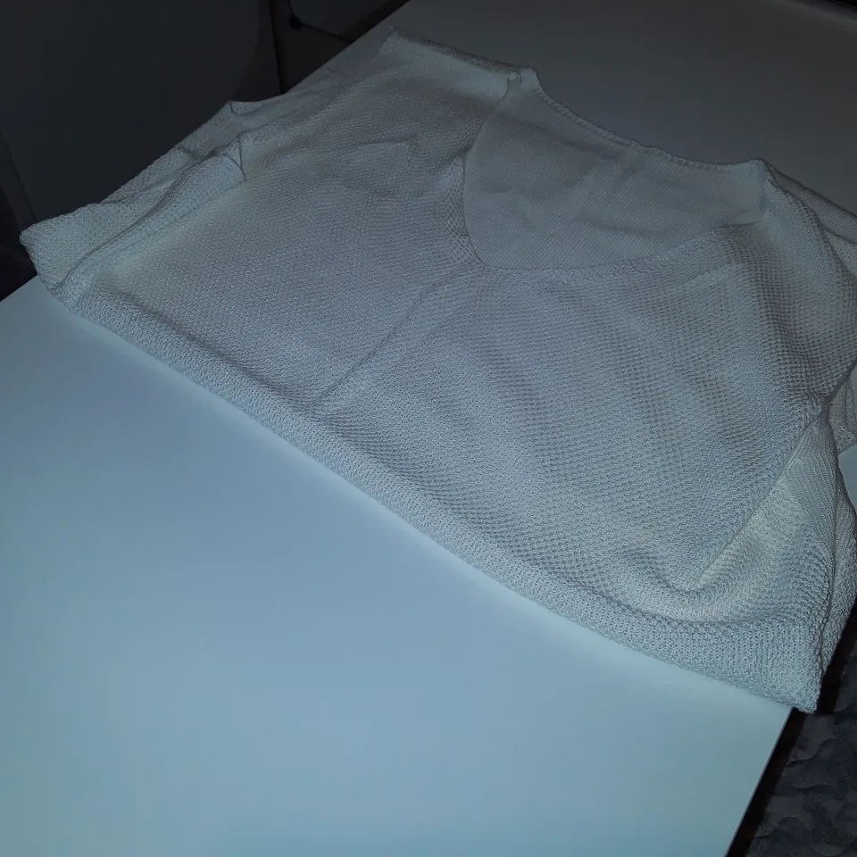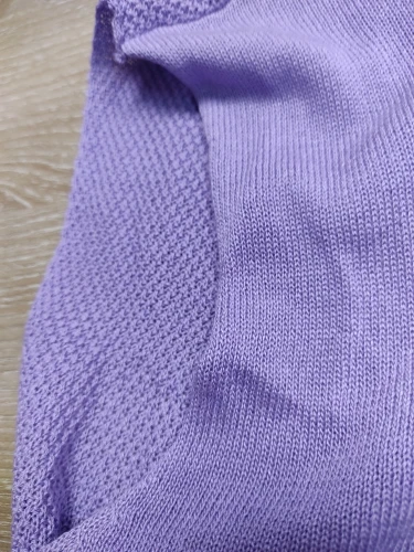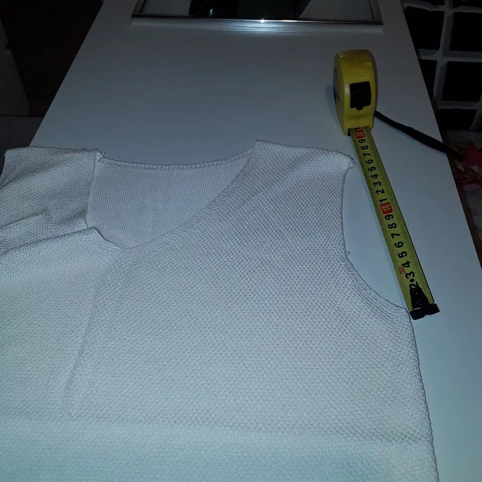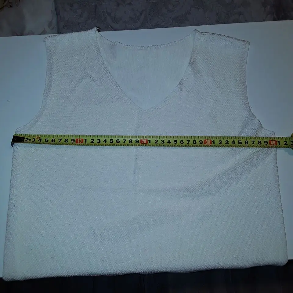 Качество хорошее, а вот с размером непонятно. По таблице М ОГ 92, а сама майка ОГ 80, но это не внатянутом состоянии. На мои параметры ОГ 86 в принципе норм, а вот проймы хотелось бы пошире. Пишут Свободная майка, а это не так, она практически по фигуре, а я хотела посвободнее на лето. Цвет не чисто белый, а кремоватый. Не бирки ни размера нет. Передняя часть фактурная, задняя гладкая, тонкая вязка.