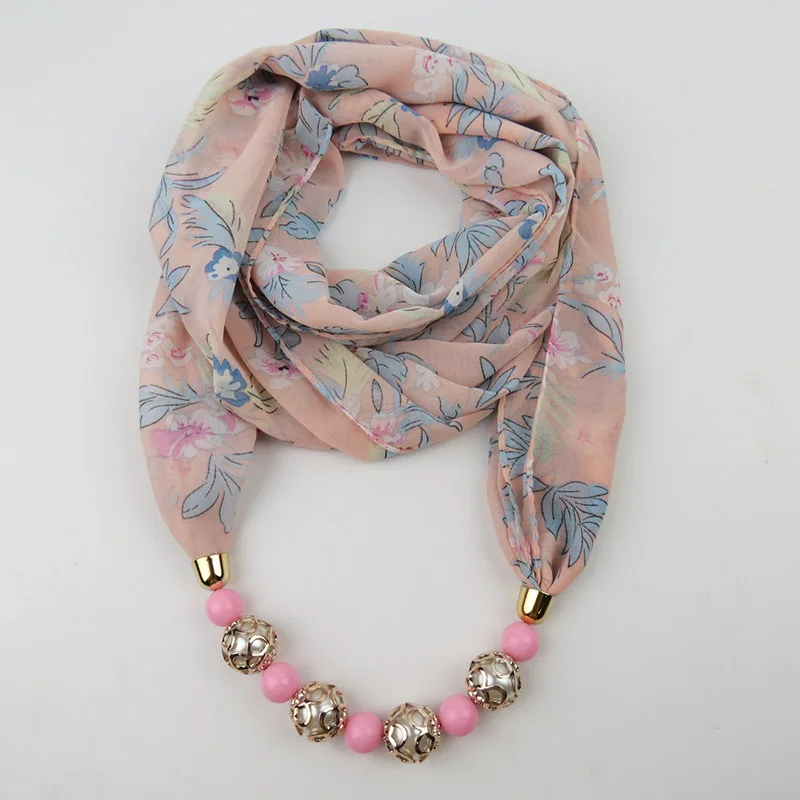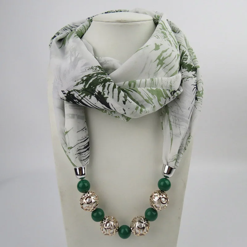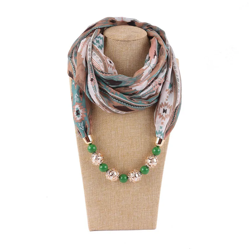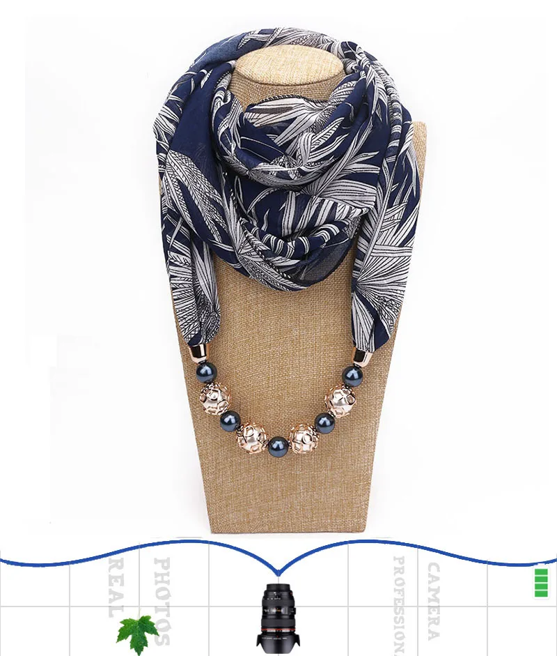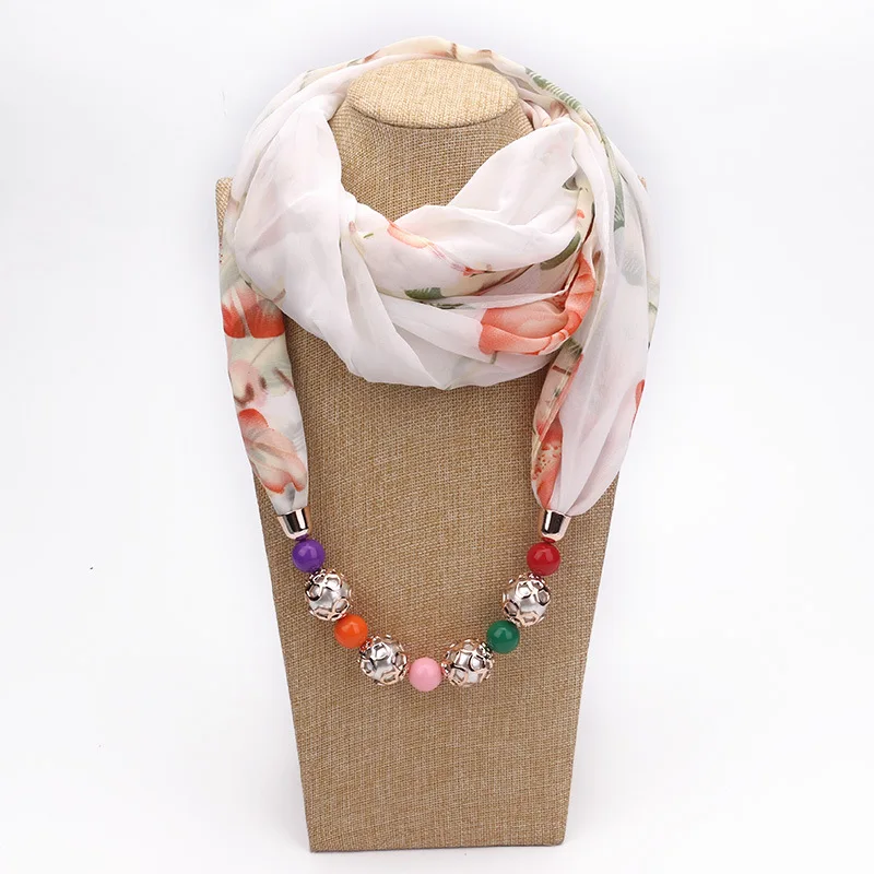 Модный шифоновый женский шарф-кольцо с принтом из бисера, ожерелье ...