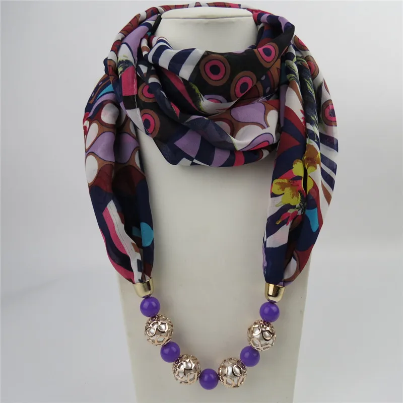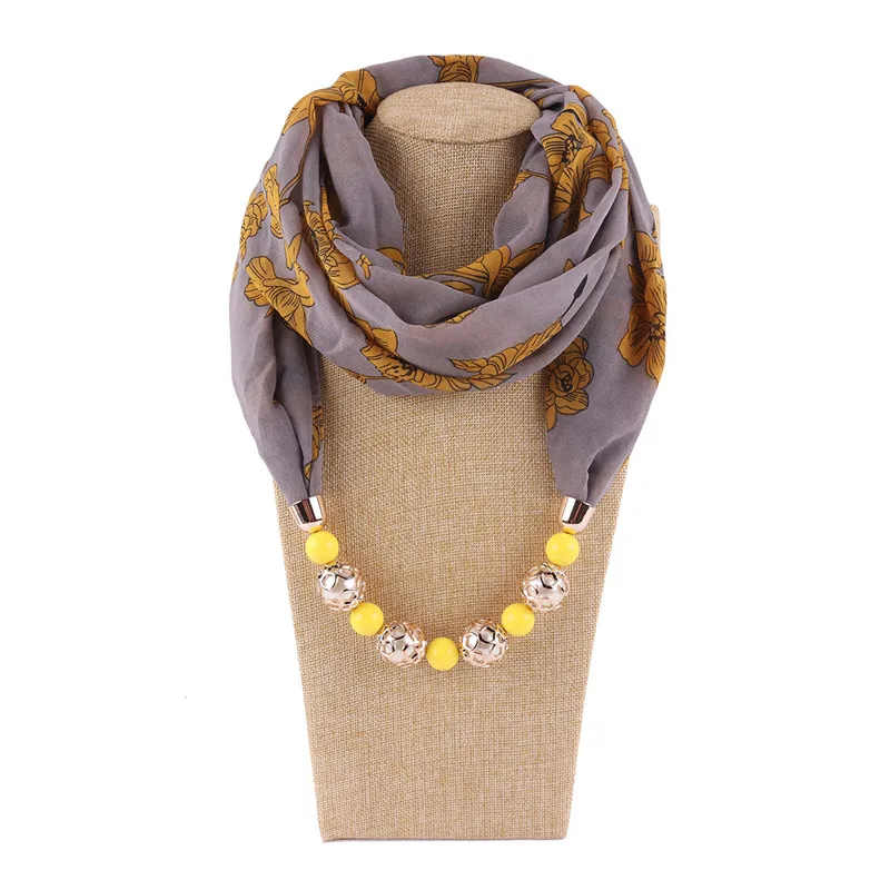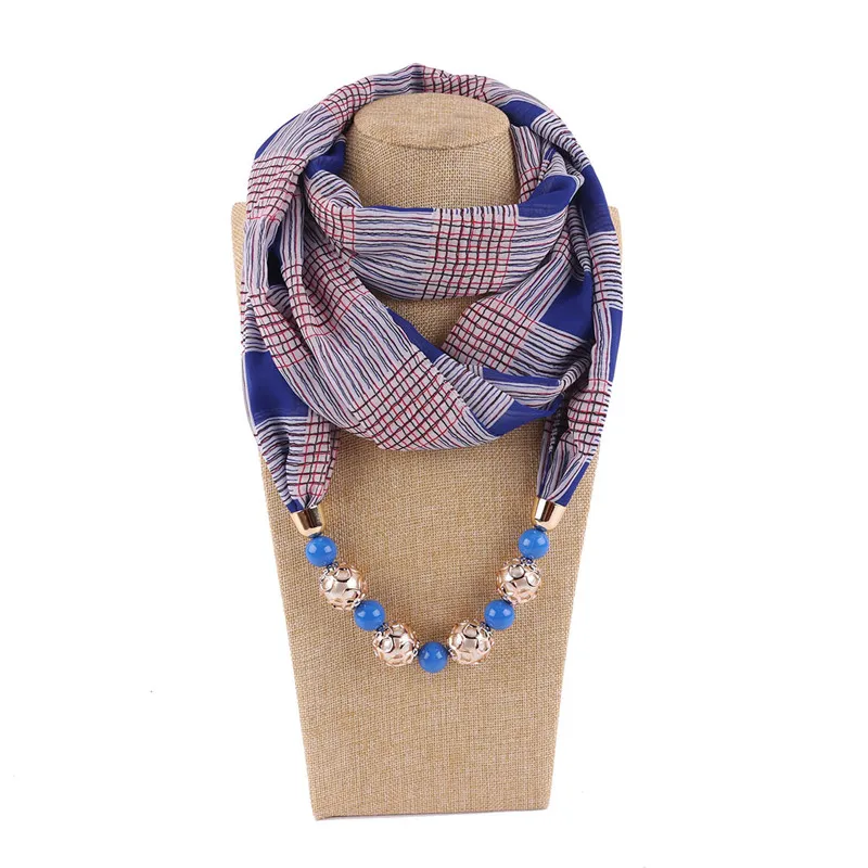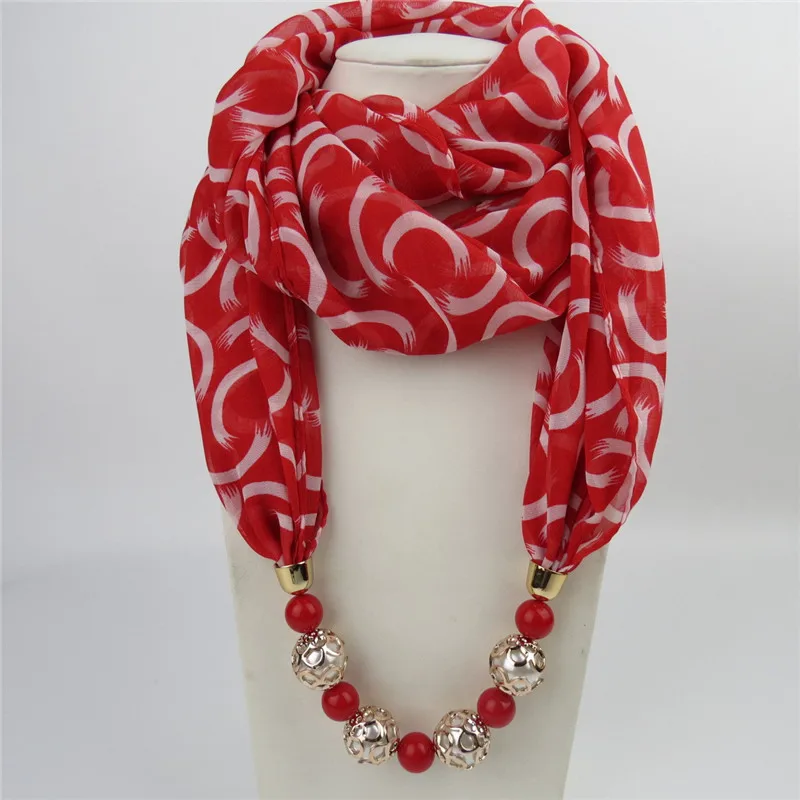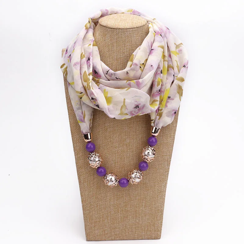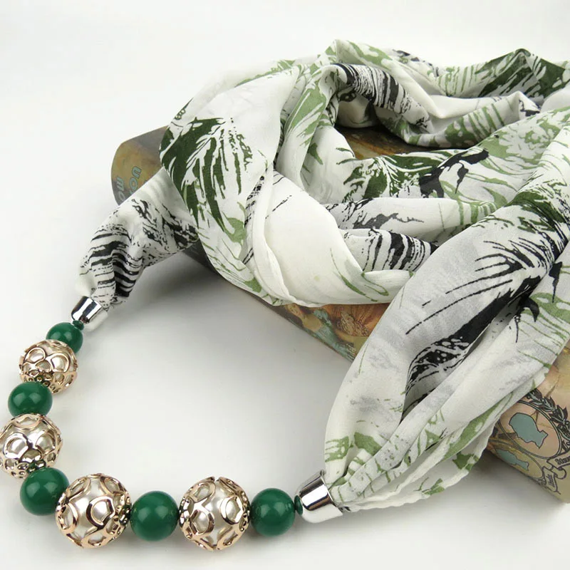 Модный шифоновый женский шарф-кольцо с принтом из бисера, ожерелье ...