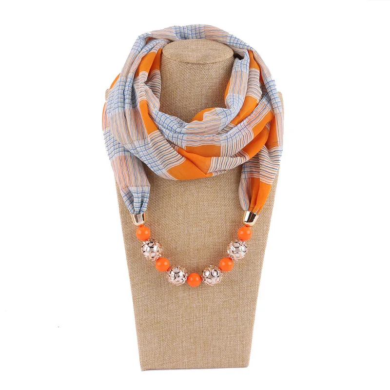 Женский шарф с кулоном, однотонное массивное ожерелье с шарфом, акс...