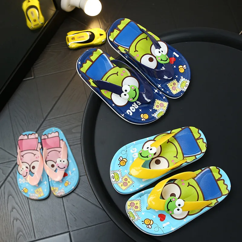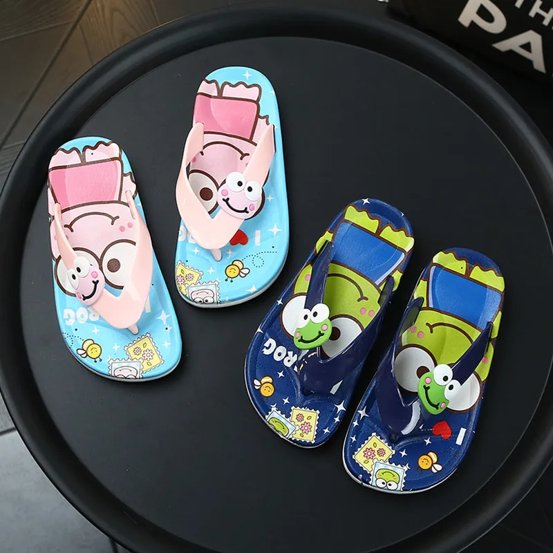 Шлепанцы Детские с рисунком лягушки, летние пляжные сандалии для девочек, шлепанцы для ванной комнаты, домашняя обувь для маленьких мальчиков