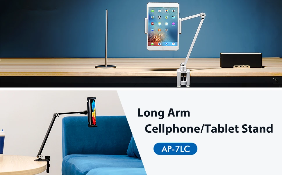 Подставка для планшета, вращающаяся, длинная, мобильный телефон дюймов, с регулируемой высотойуглом, из алюминиевого сплава, для iPhone, iPad 4-13 дюймов