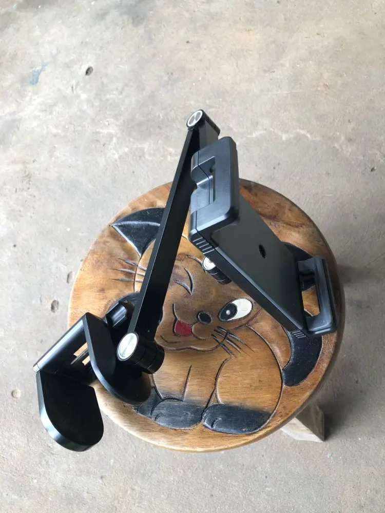 хорошая, прочная "нога", но большой планшет держит только в вертикальном положении, на горизонтальную не раскрывается держатель.