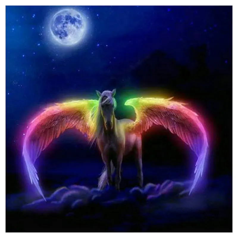 Полностью квадратнаякруглая Алмазная Картина лошадь цвет крылья вышивка крестиком Бриллиантовая мозаичная фигурка животного 3d холст вышивка алмазное искусство