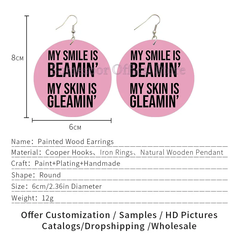 Деревянные висячие серьги SOMESOOR Life Is Good в стиле поп-арт, ми...