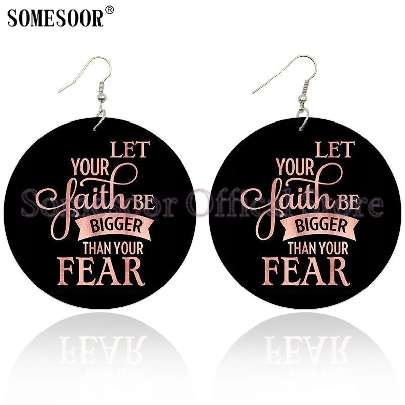 Серьги-подвески женские SOMESOOR, черные деревянные, с изображением веры над страхом