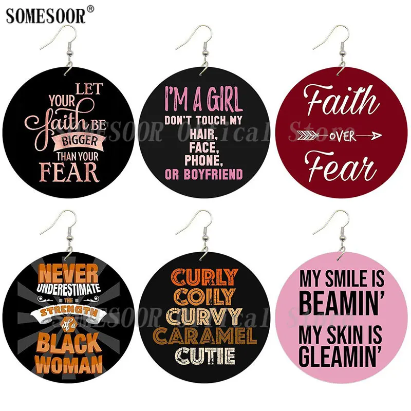 SOMESOOR вдохновляющие черные высказки, деревянные серьги-капли с п...