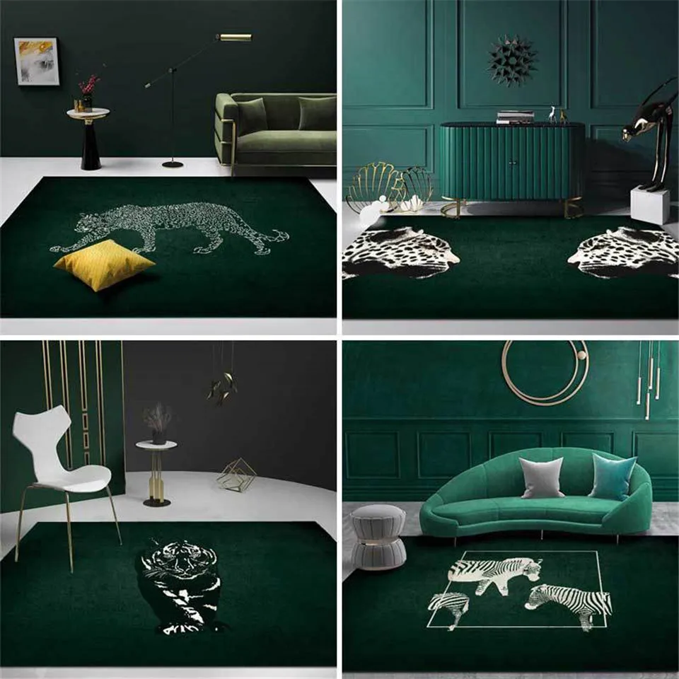 Модный Роскошный Леопардовый зеленый ковер для гостиной, ковер с животным принтом, кухонные коврики, моющийся декоративный ковер для спальни, дивана