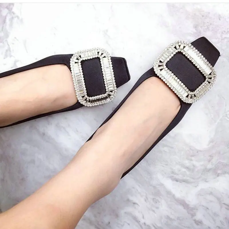 Женские полуботинки в Корейском стиле; Модные атласные туфли-стразы...