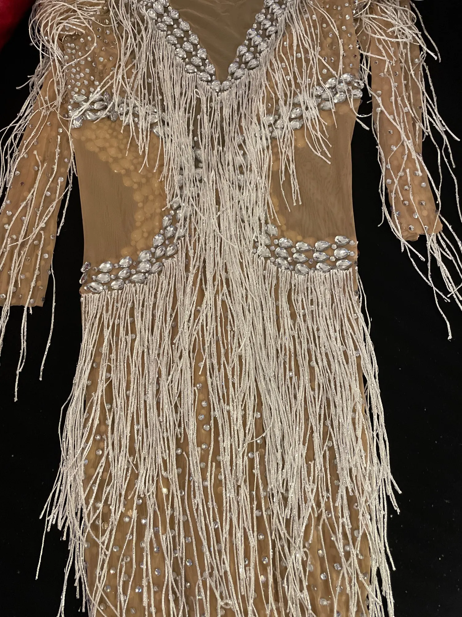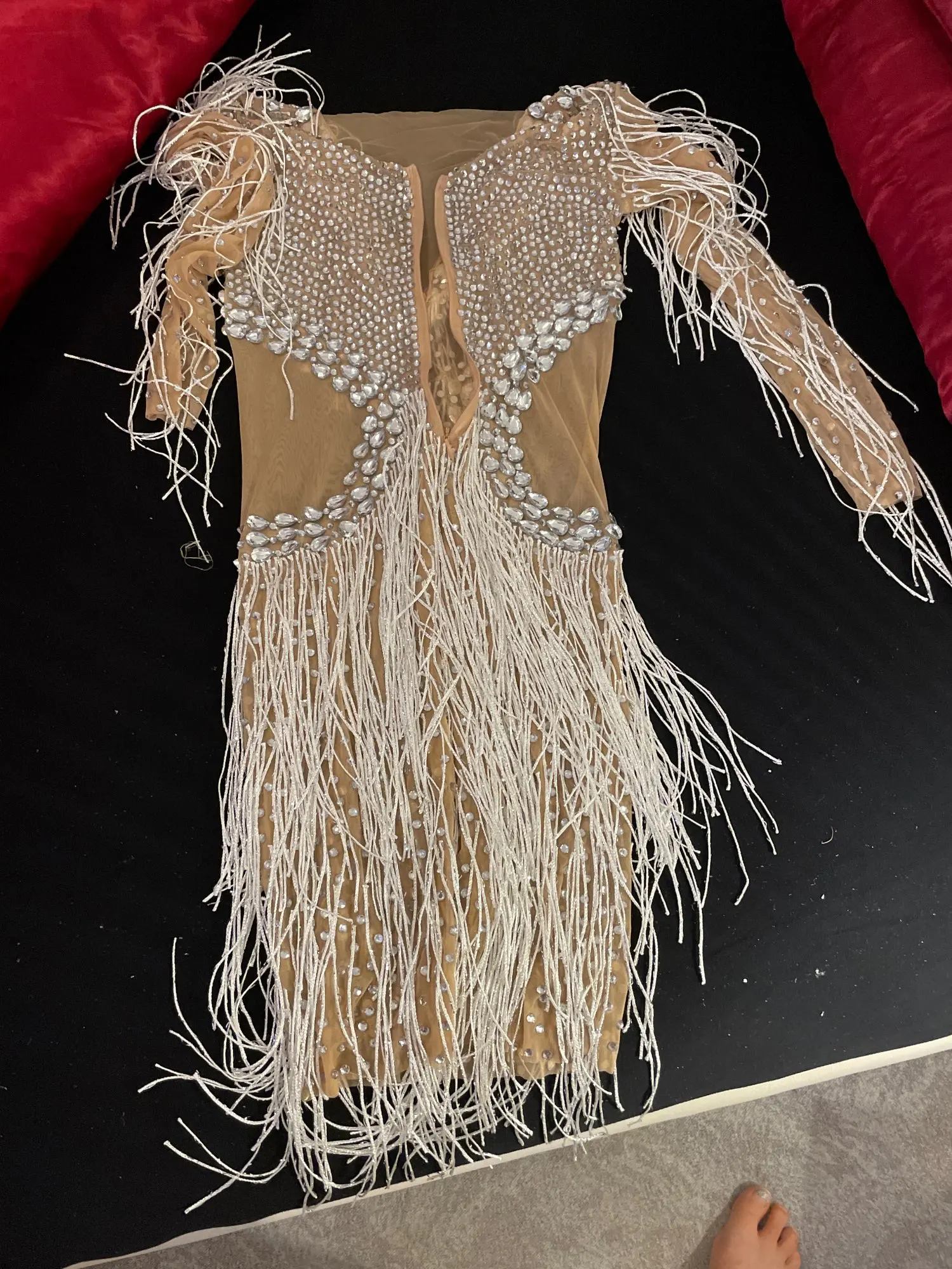 Женское вечернее платье с бахромой, серебро 2022 пробы
