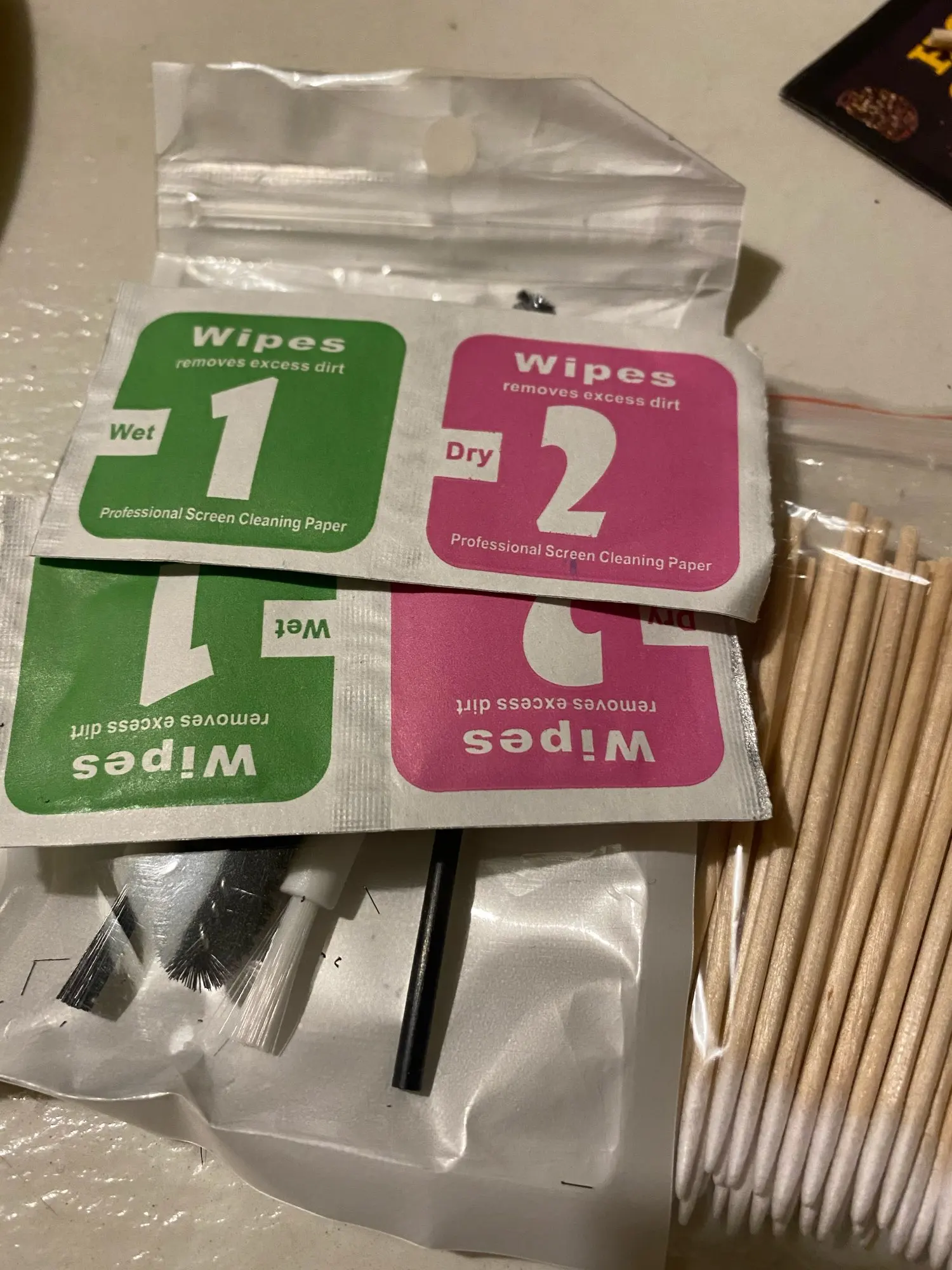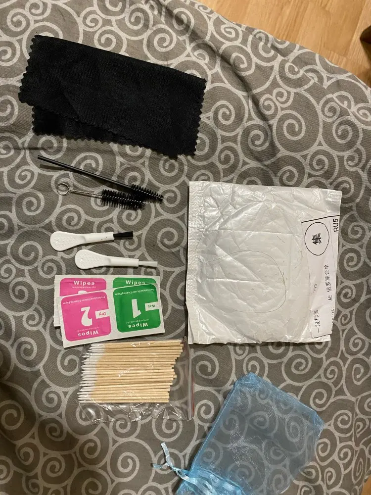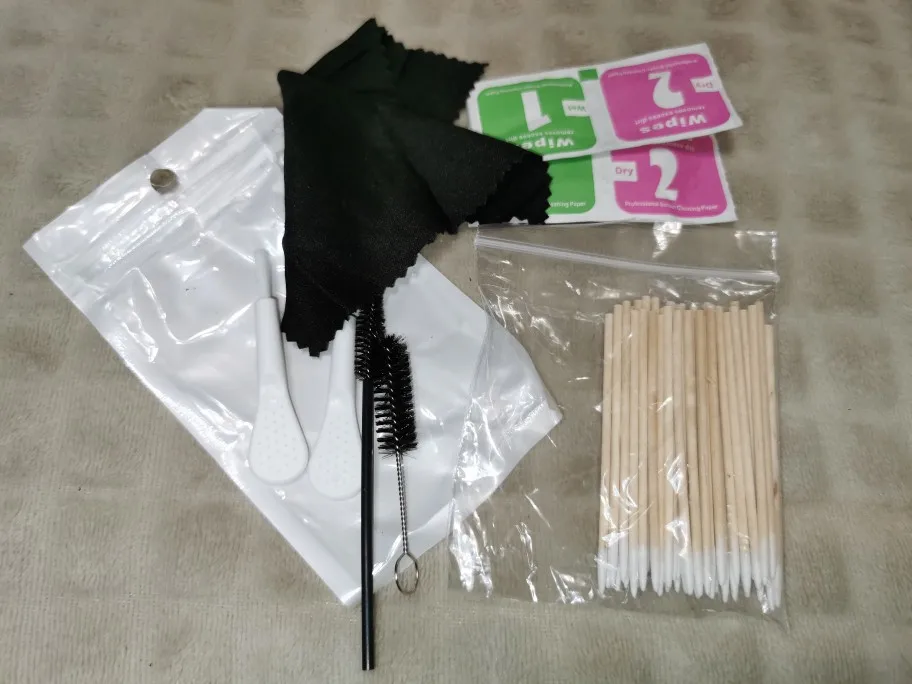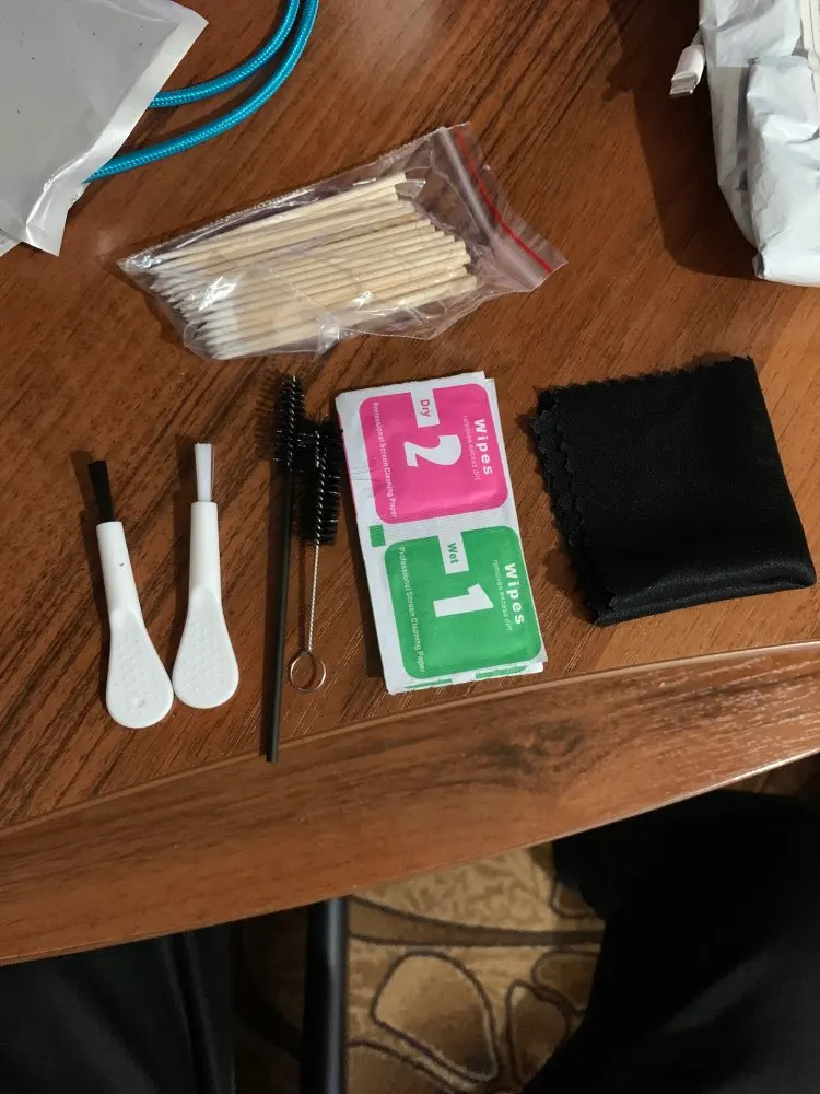 Полный набор. Все имеющиеся детали указанные на фото получены. Чистить удобно. Рекомендуем всем. Качество хорошее. Доставка быстрая. Очень. Пригодится для наушников. Нужная вещь. Берите все