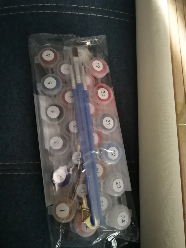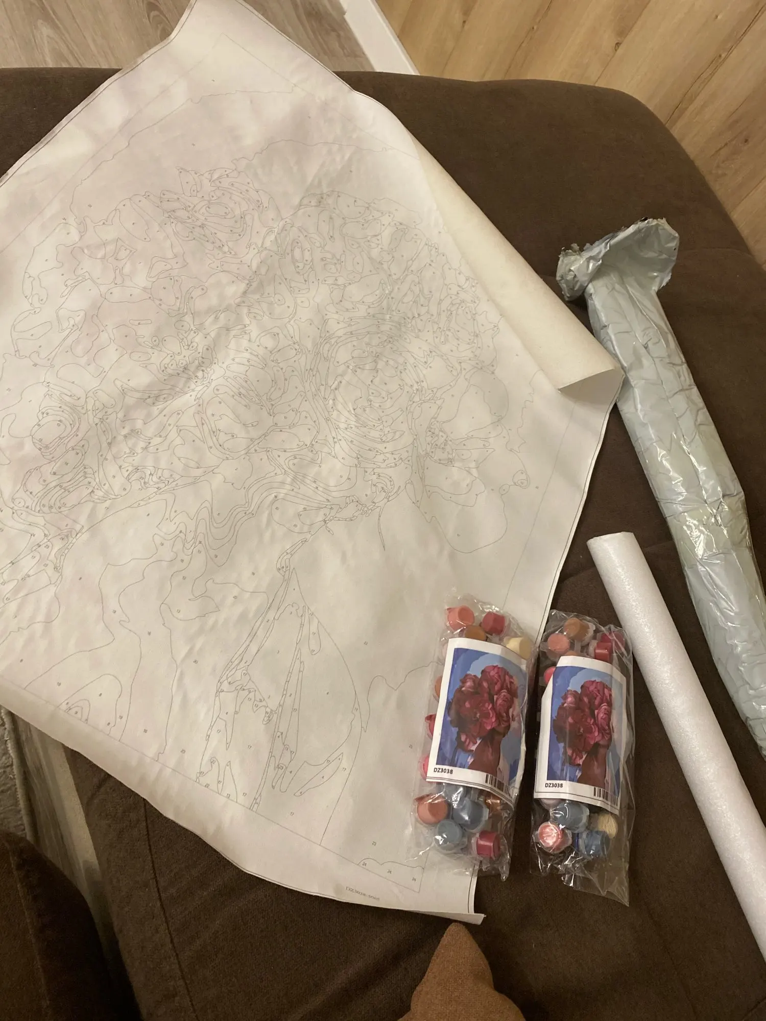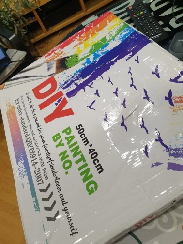 До Калининграда посылка шла больше 60 дней, это безумно долго. При чем по России шла буквально несколько дней, а всё остальное время статус был «Отправлено из Китая». Качество холста отличное, краски все свежие. Немного разочаровала печать номеров: безумно мелко, что аж не разобрать, и слегка криво (некоторые съехали сильно и не понятно к чему они относятся).