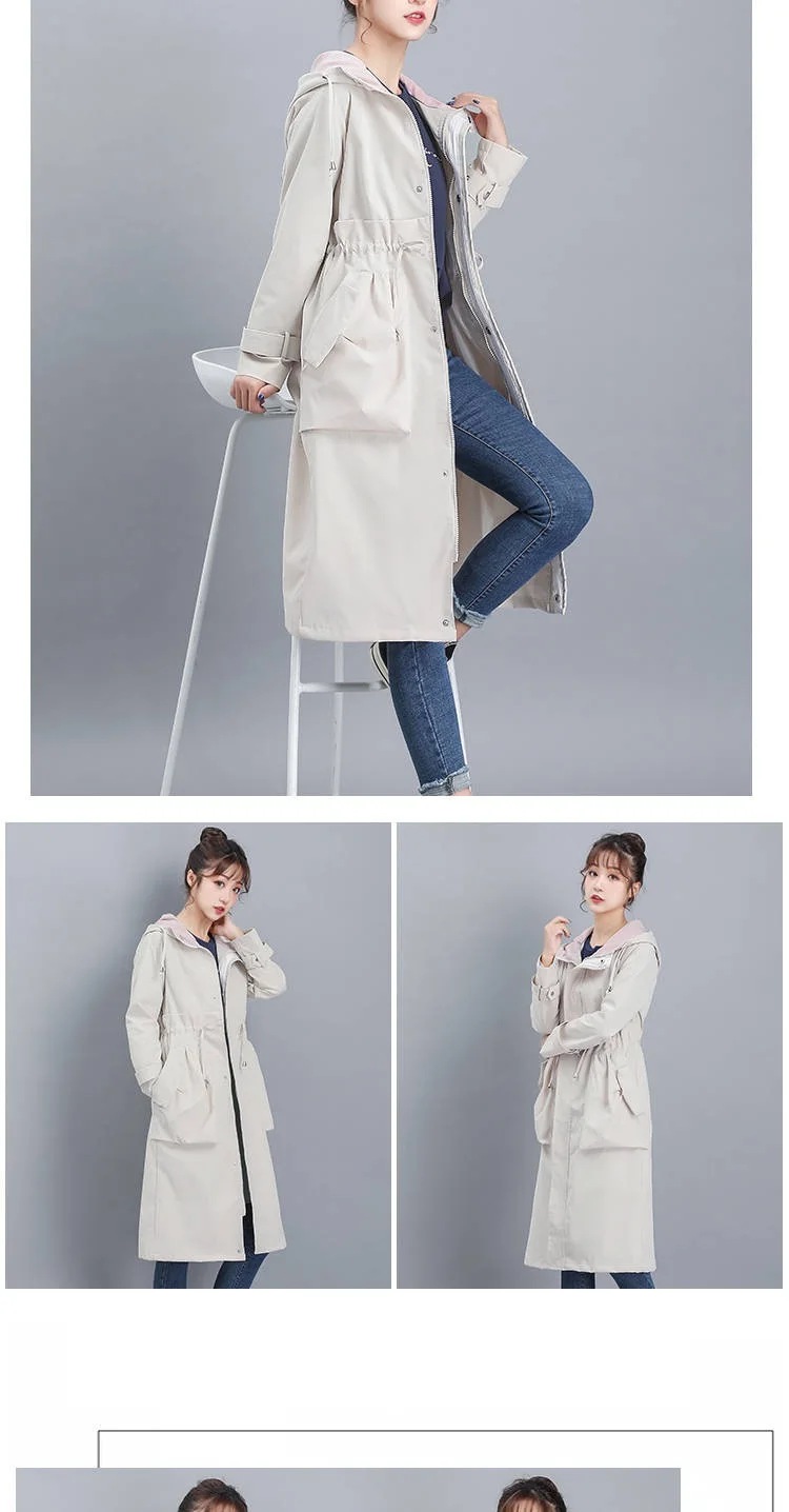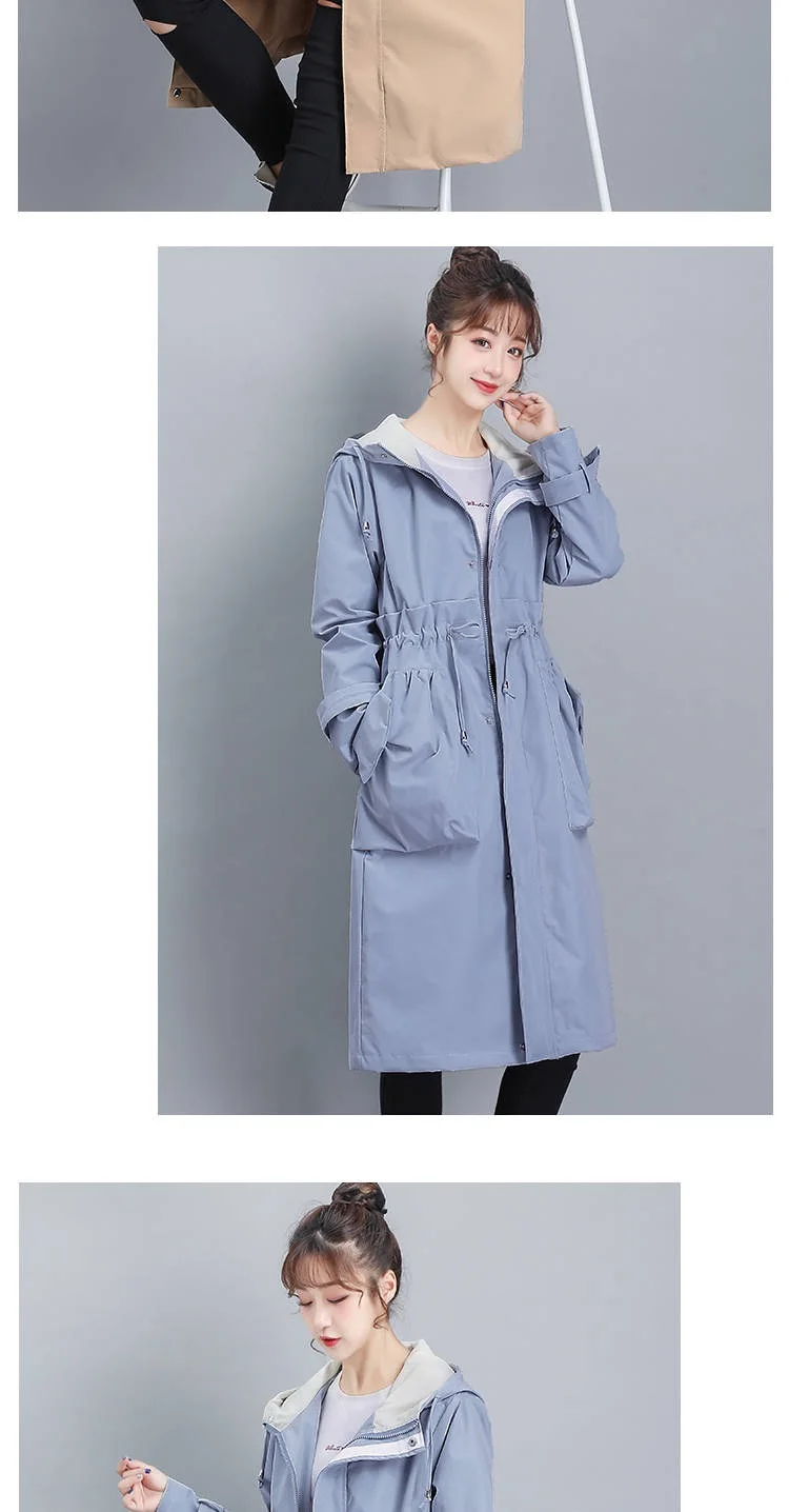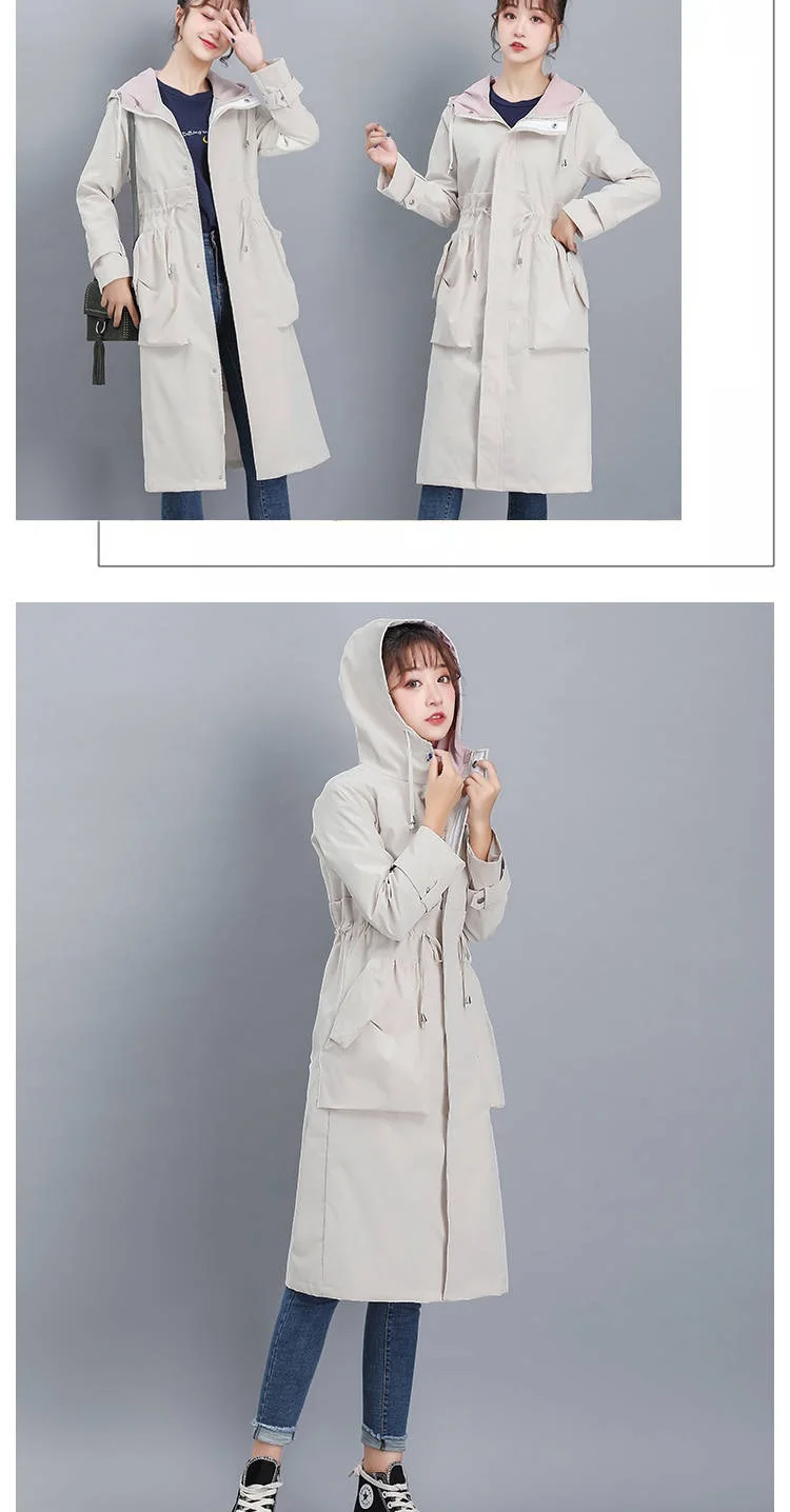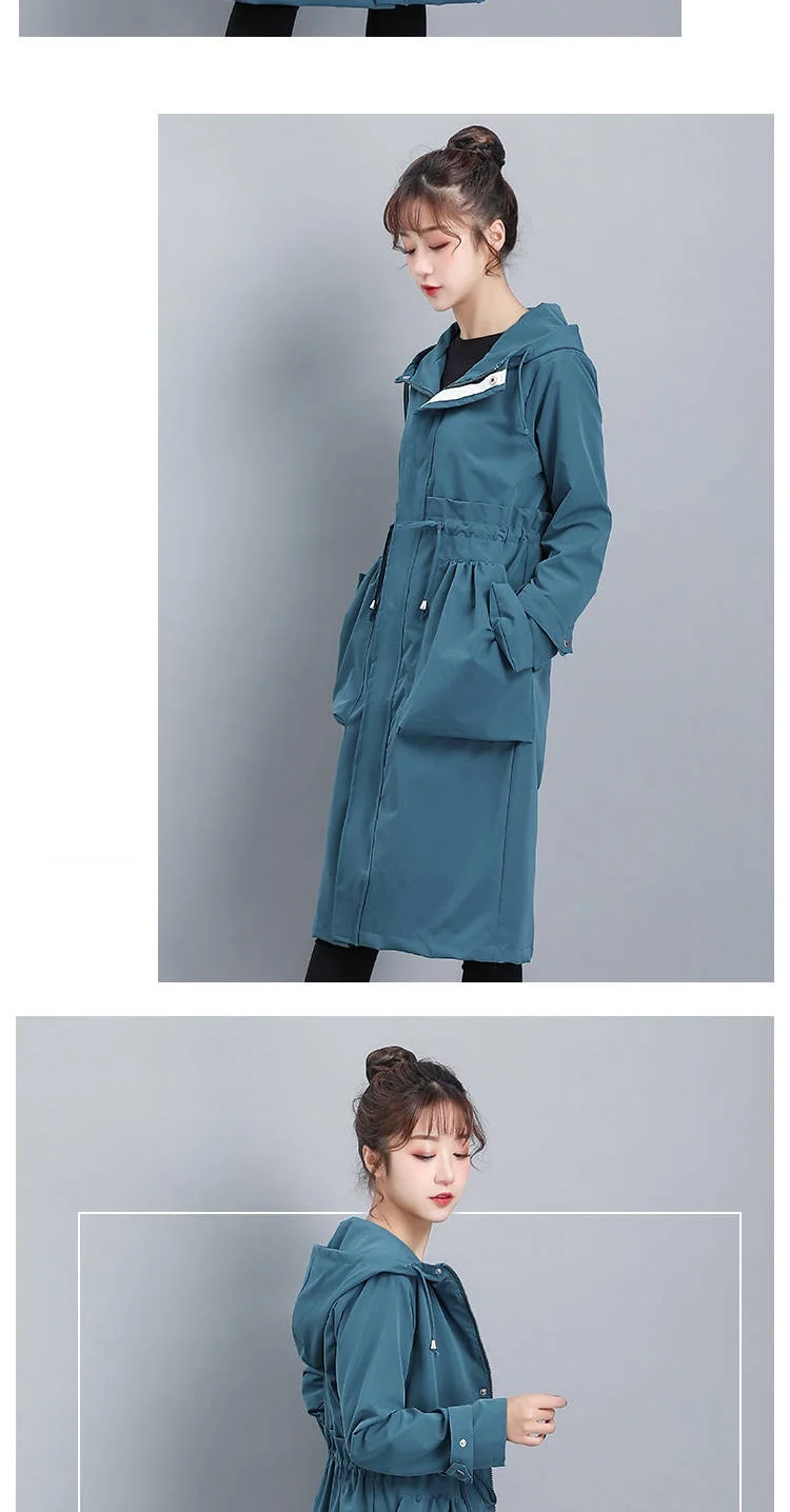 Корейские узкие ветровки женские 2021 сезон весна; Новинка; Длинный плащ пальто свободного покроя с капюшоном, верхняя одежда на осень размера плюс свободные пальто