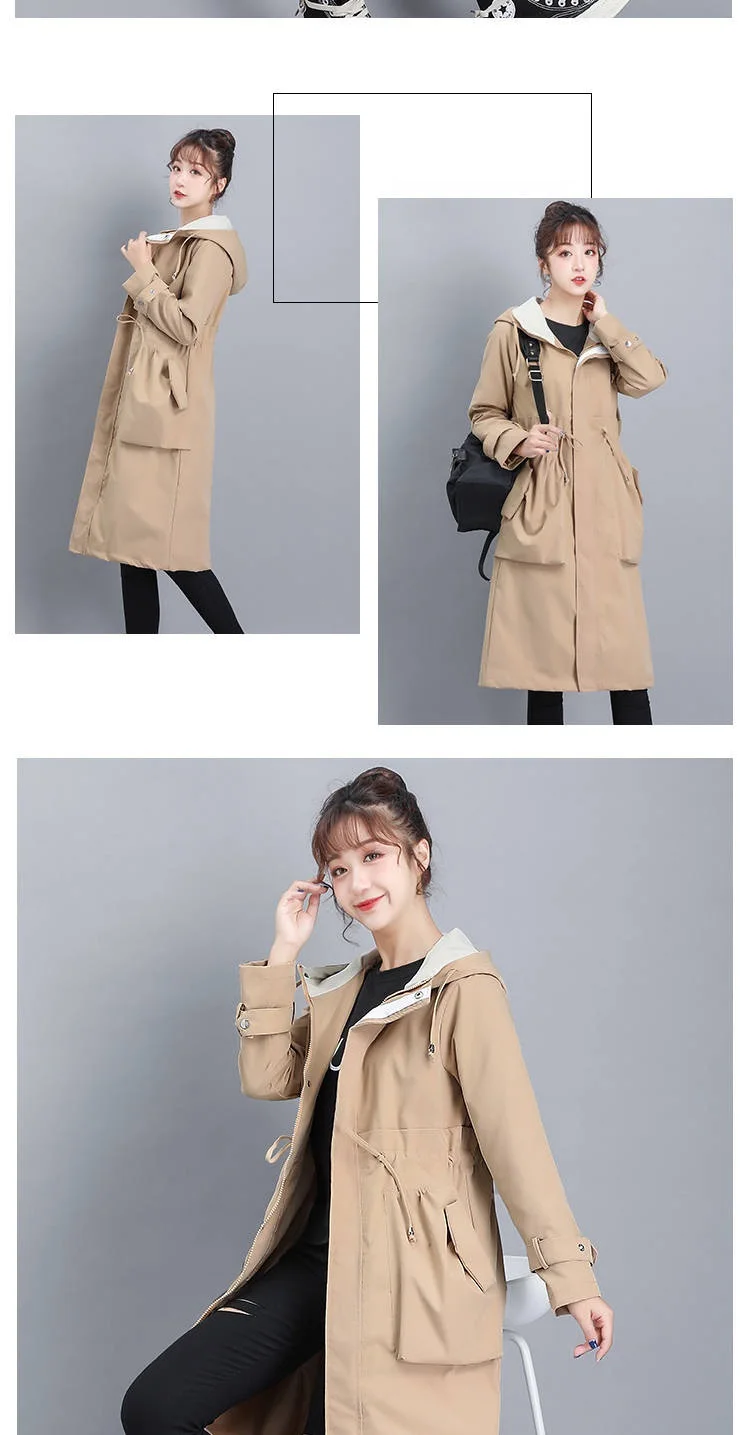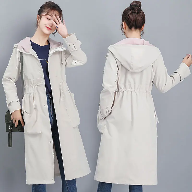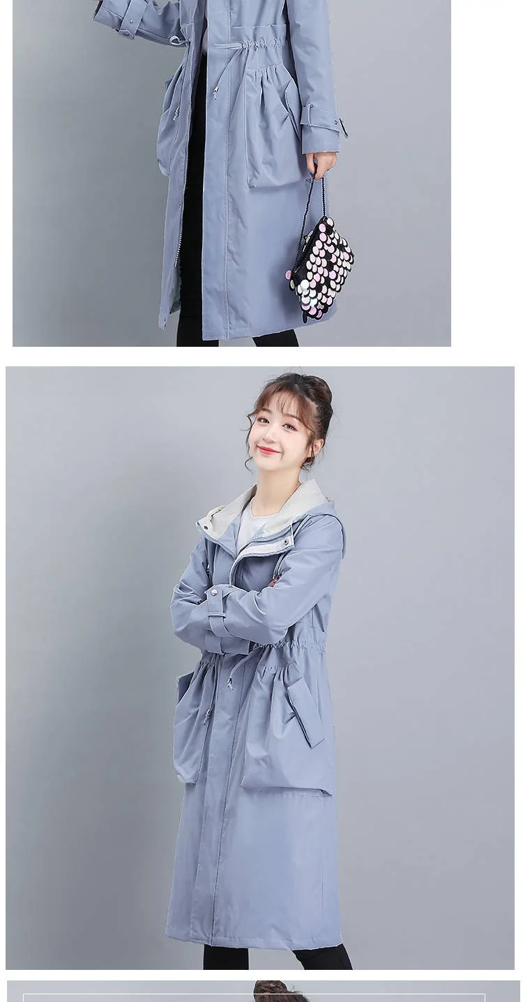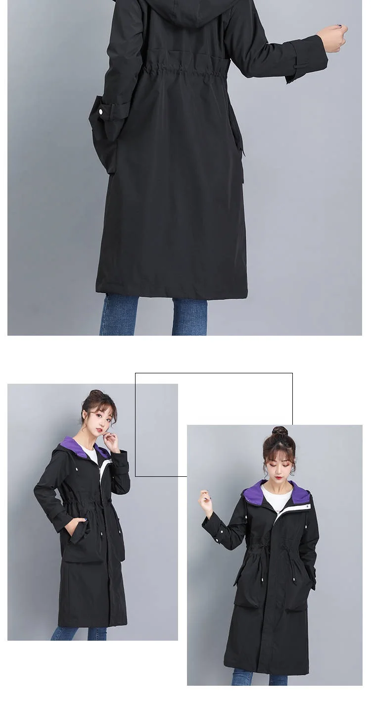 Корейские узкие ветровки женские 2021 сезон весна; Новинка; Длинный плащ пальто свободного покроя с капюшоном, верхняя одежда на осень размера плюс свободные пальто
