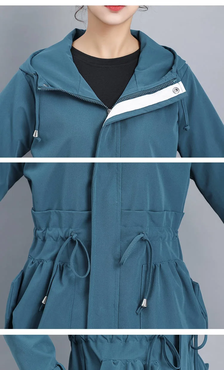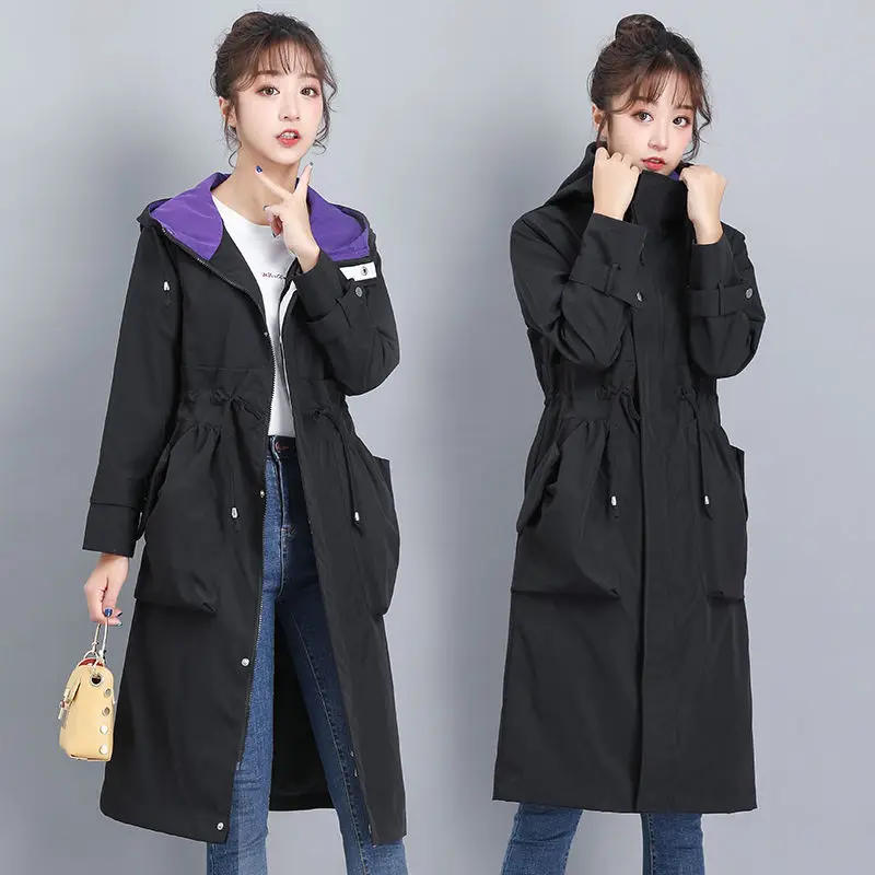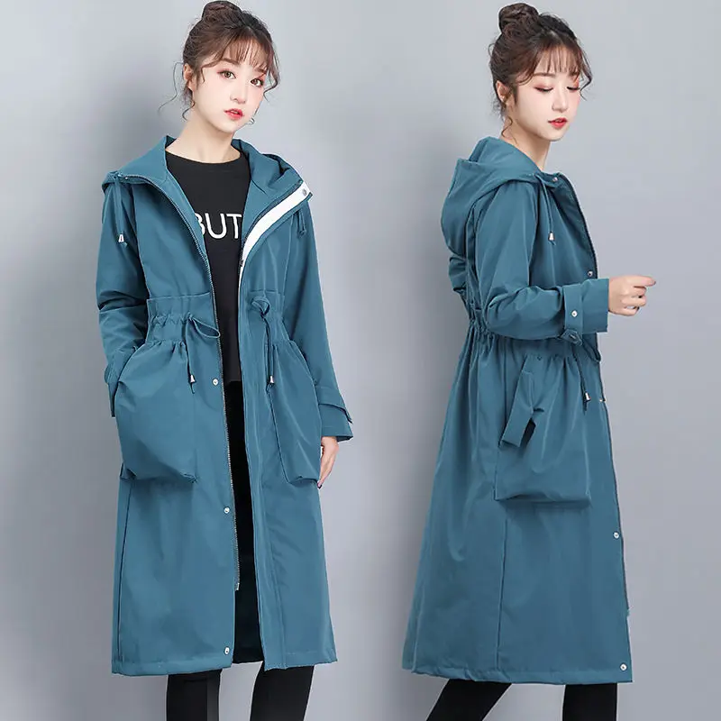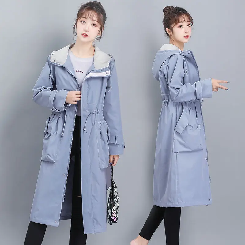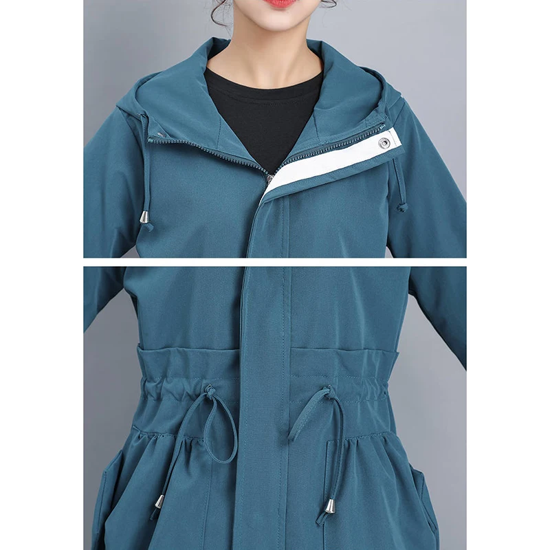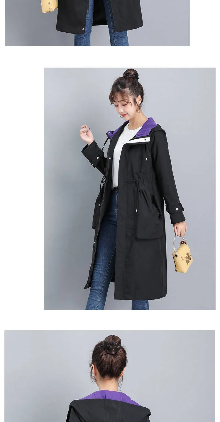 Корейские узкие ветровки женские 2021 сезон весна; Новинка; Длинный плащ пальто свободного покроя с капюшоном, верхняя одежда на осень размера плюс свободные пальто