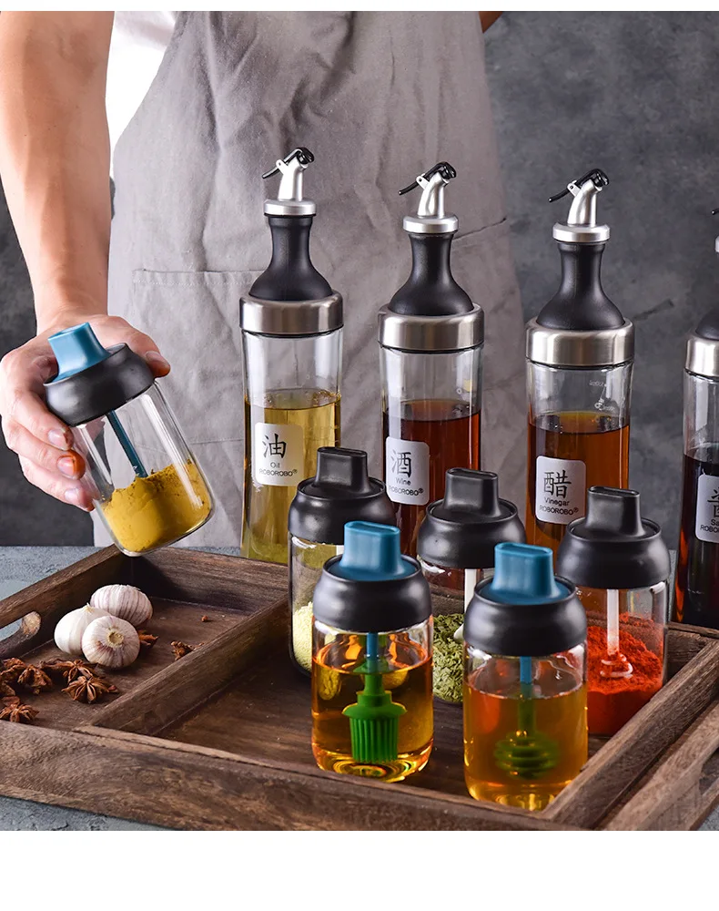 Кухонные контейнеры для приправ, герметичная стеклянная бутылка для соли, крышка ложки, бутылка с масляной кистью, банки для специй, мед, масленка