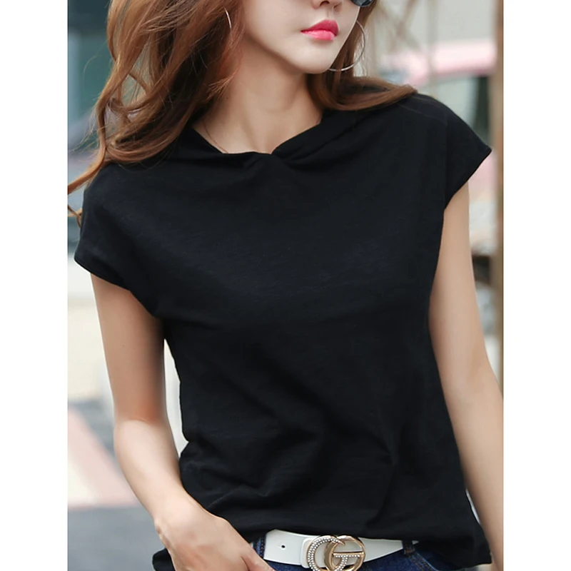 Футболка женская Camisas 2021, футболка с капюшоном, женские летние топы с коротким рукавом, женская футболка размера плюс
