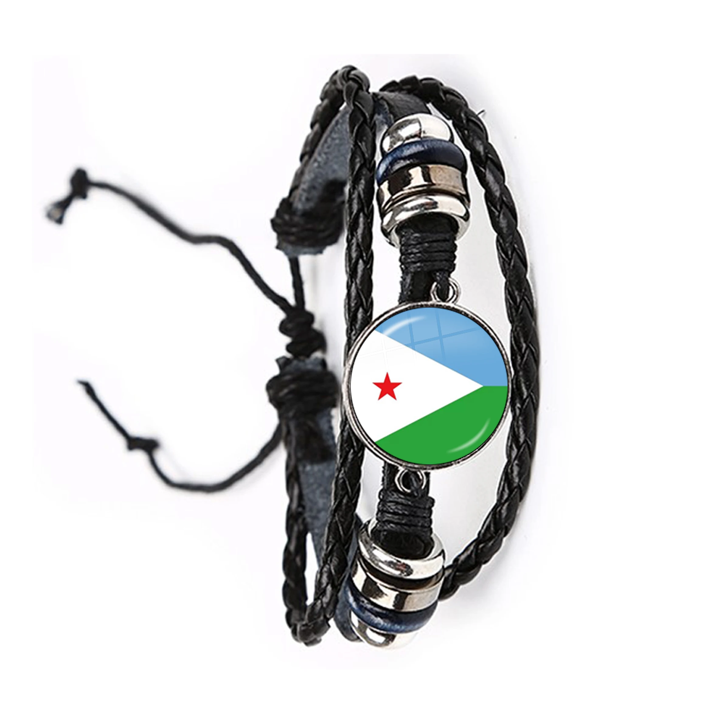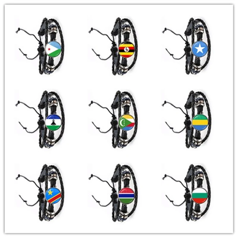 Женский, мужской кожаный браслет с национальным флагом, кожаный браслет в подарок из джибутии, Уганды, Гамбии, Габона, Конго, Коморских Островов, Лесото, Сомали, Болгарии