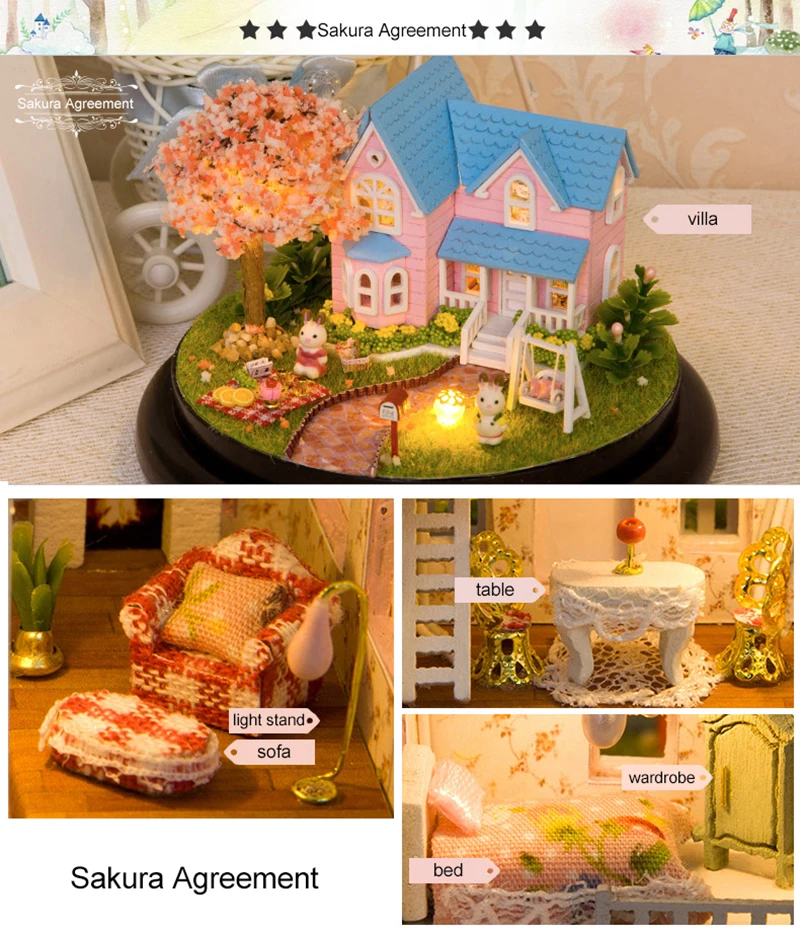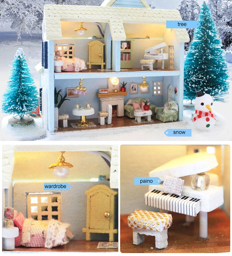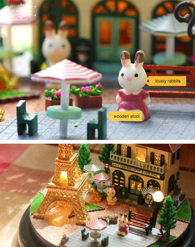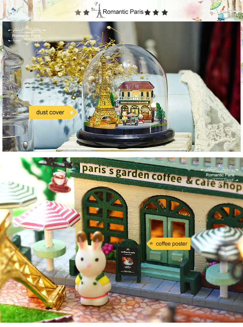 Вы получите: 1. Светодиодный светильник 2. Пылезащитный чехол 3. Музыкальная шкатулка 4. Вся мебель такая же, как на изображении! Красивая упаковка подарочная коробка Материал: дерево, ткань, бумага, смола, пластик, материал Обратите внимание: 1. Не включает инструменты, клей/аккумулятор. 2. Кабина построит вас самостоятельно 3. Возраст: подходит для детей старше 12 лет