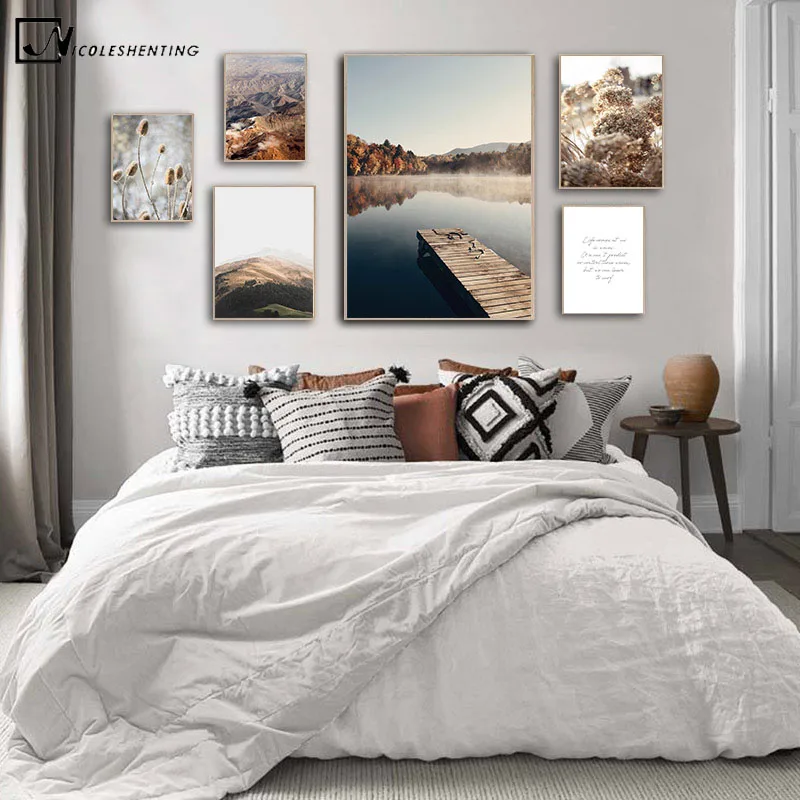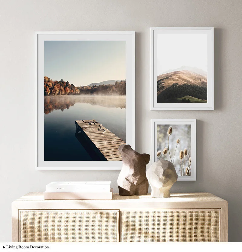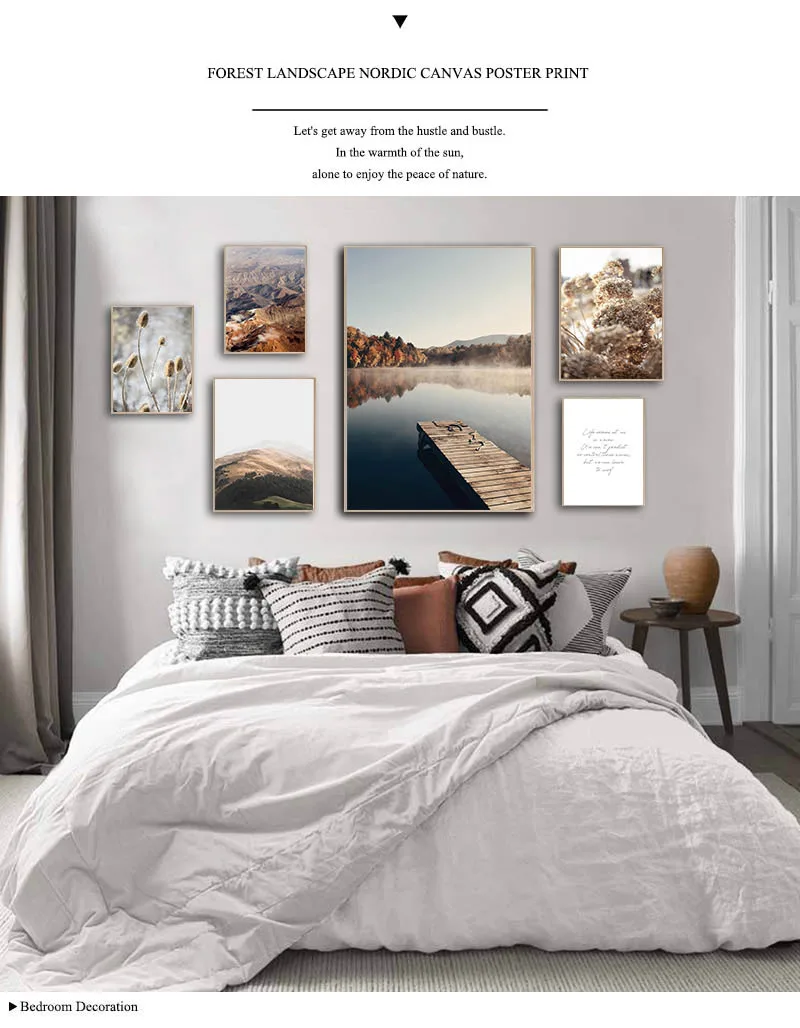 Лес горы озеро знаменитый Пейзаж Плакат скандинавский стиль холст п...
