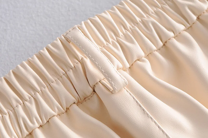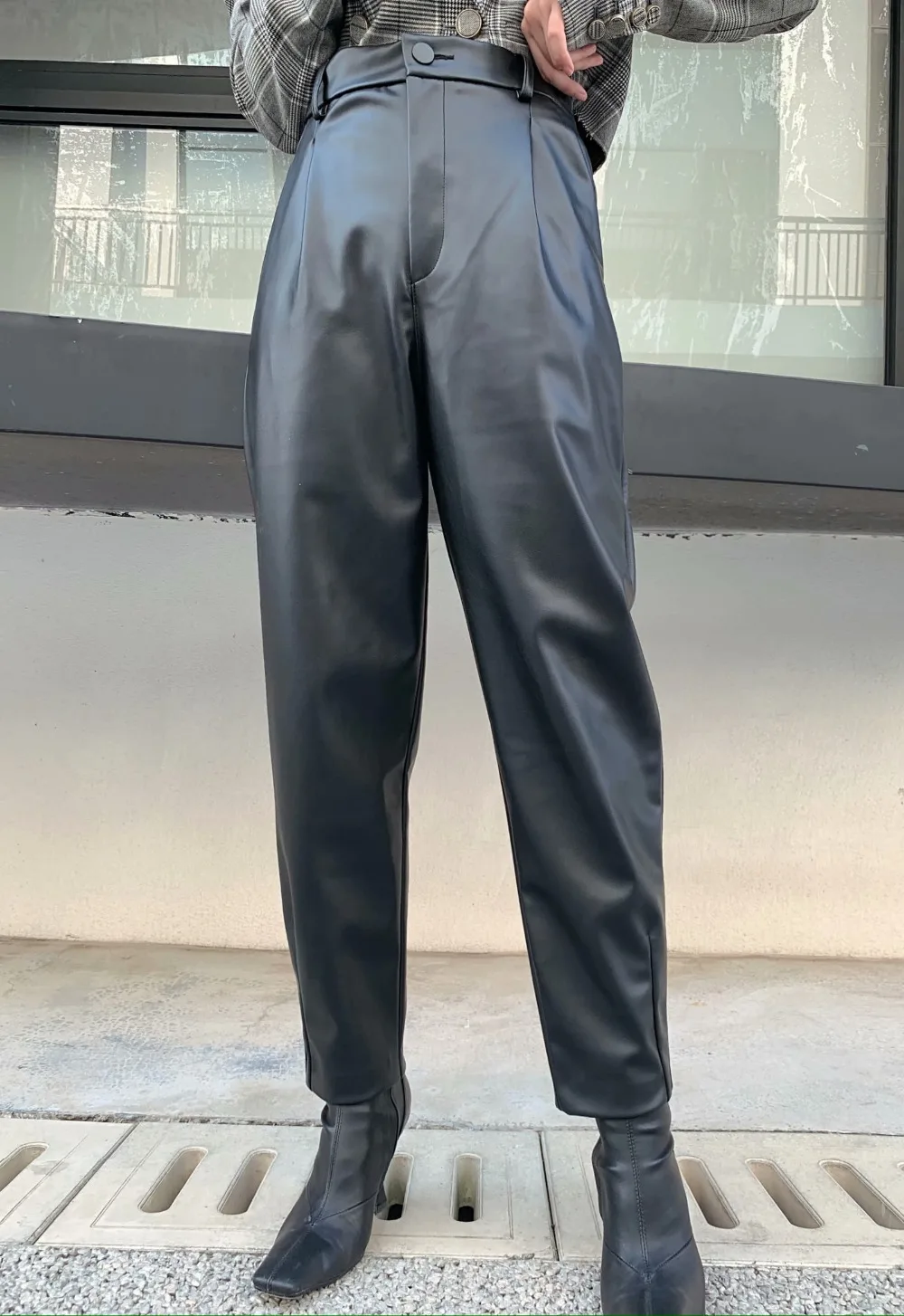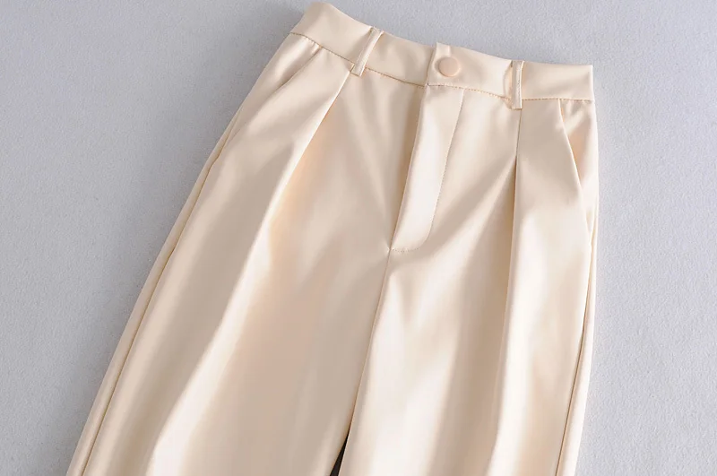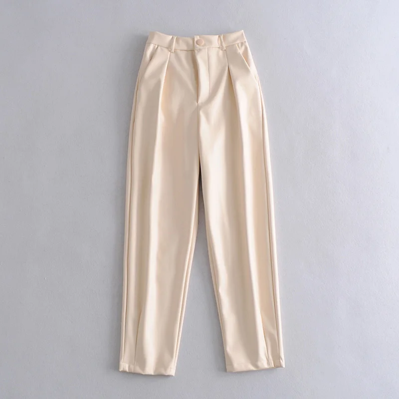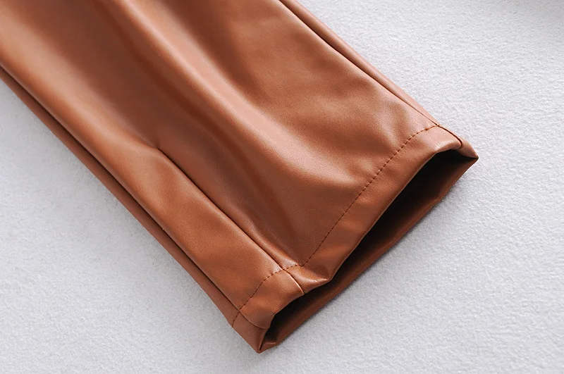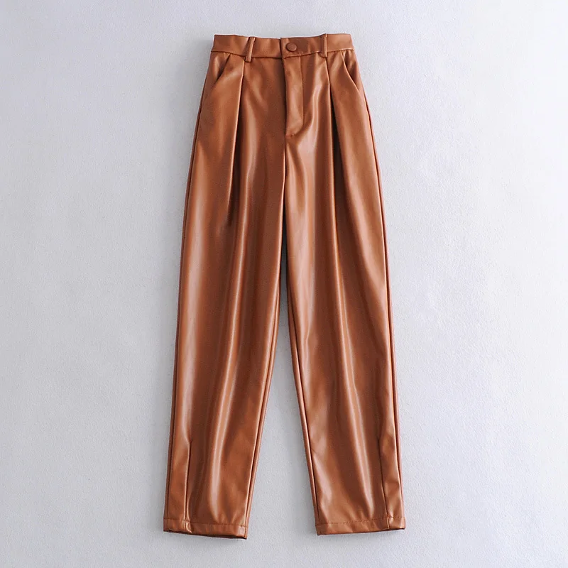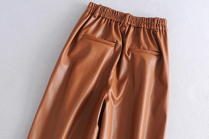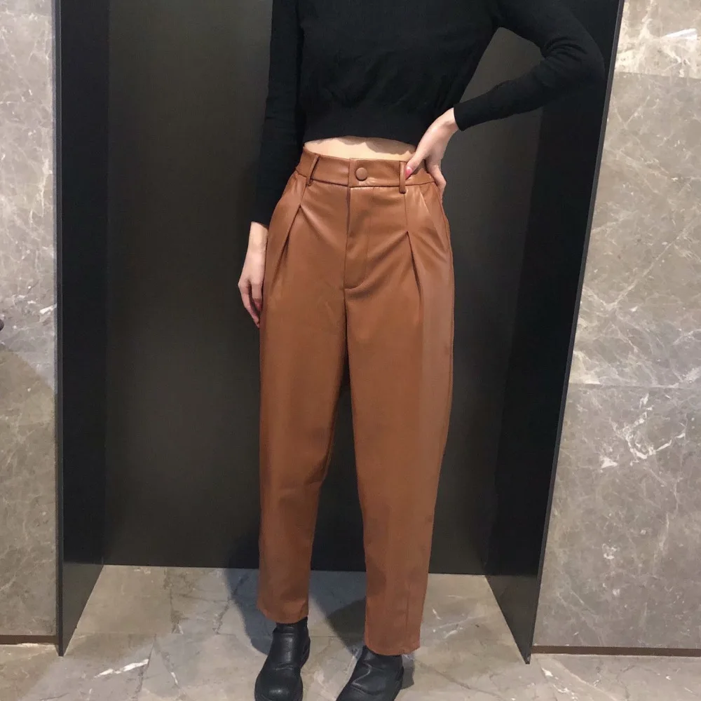 Брюки женские из искусственной кожи, с высокой талией, свободные, элегантные, цвета хаки, 2021