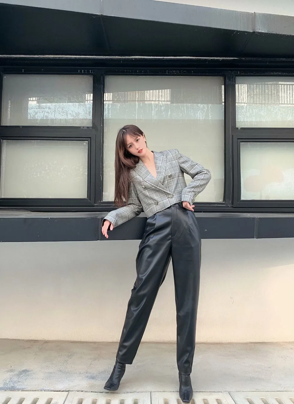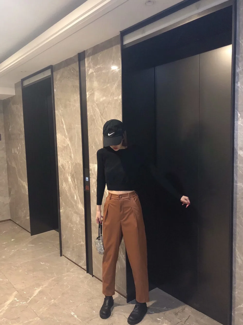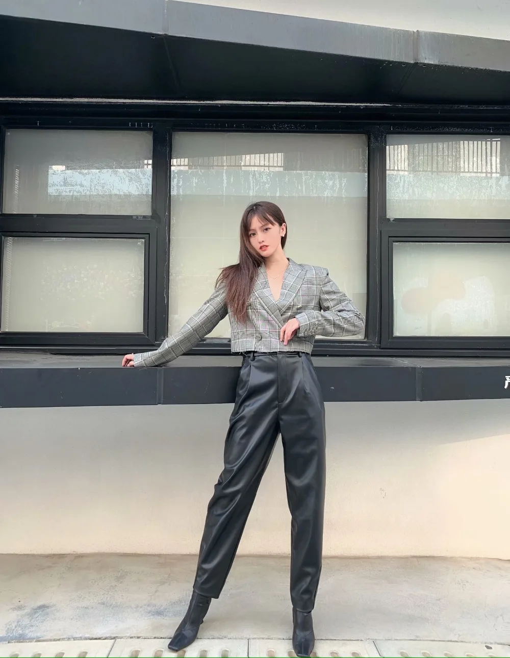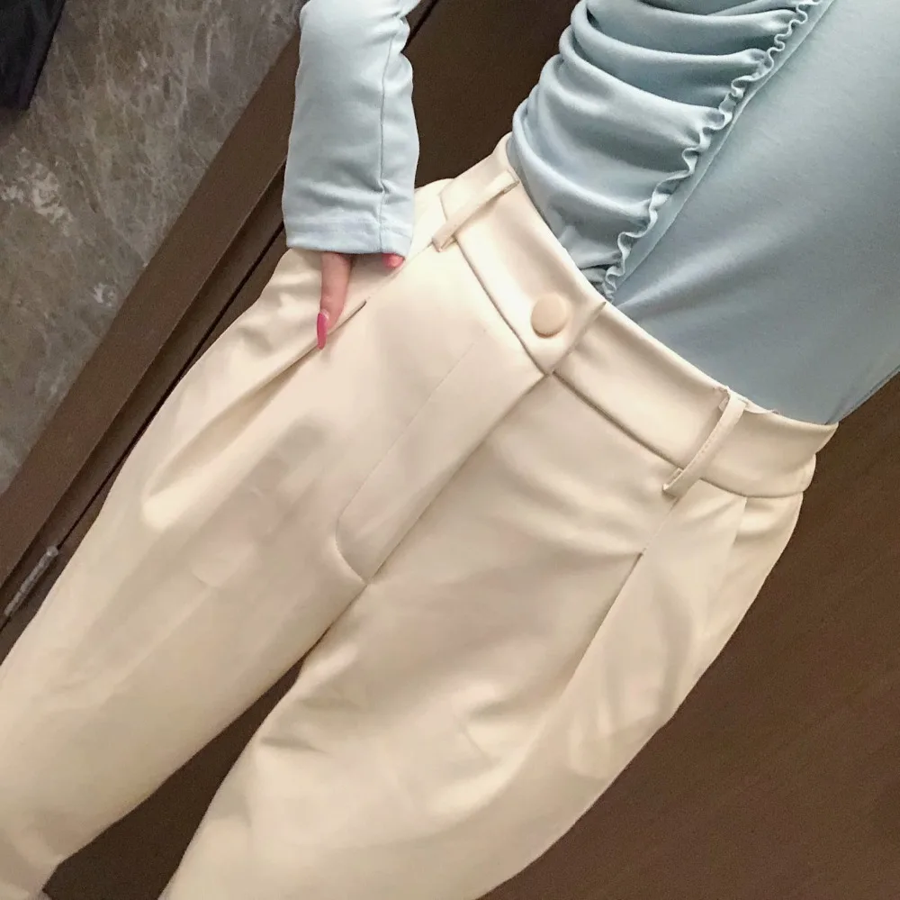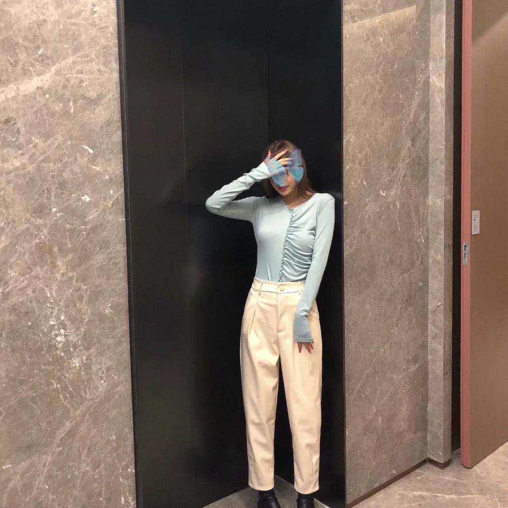 Брюки женские из искусственной кожи, с высокой талией, свободные, элегантные, цвета хаки, 2021