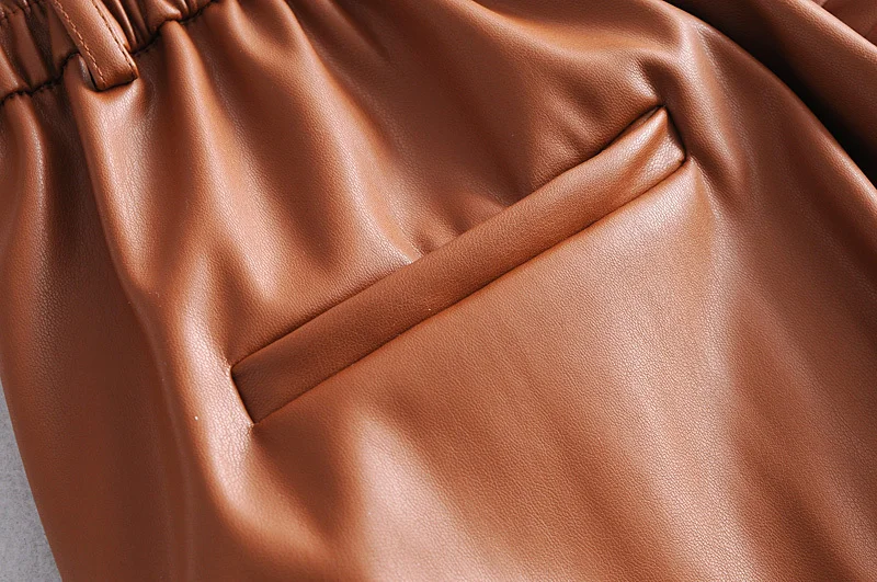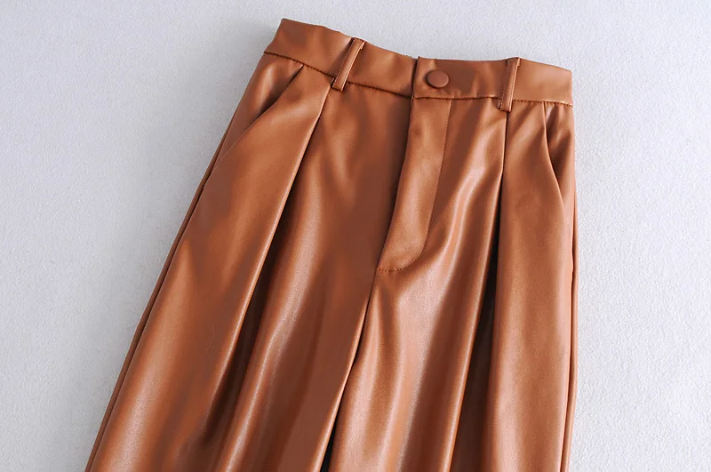 Новинка 2021, женские брюки из искусственной кожи с высокой талией, Модные свободные брюки из искусственной кожи, женские элегантные брюки с карманами, женские брюки цвета хаки