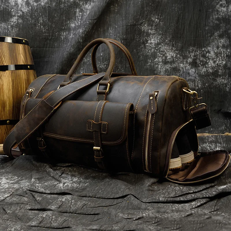 Дорожная сумка из натуральной кожи, мужская сумка из коровьей кожи, большая дорожная сумка в стиле ретро из воловьей кожи, сумка для выходных, большая сумка с карманом для обуви
