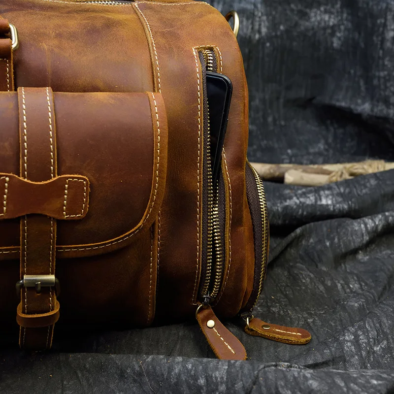 MAHEUмужские дорожные сумки из мягкой воловьей кожи в ретро стиле; ...