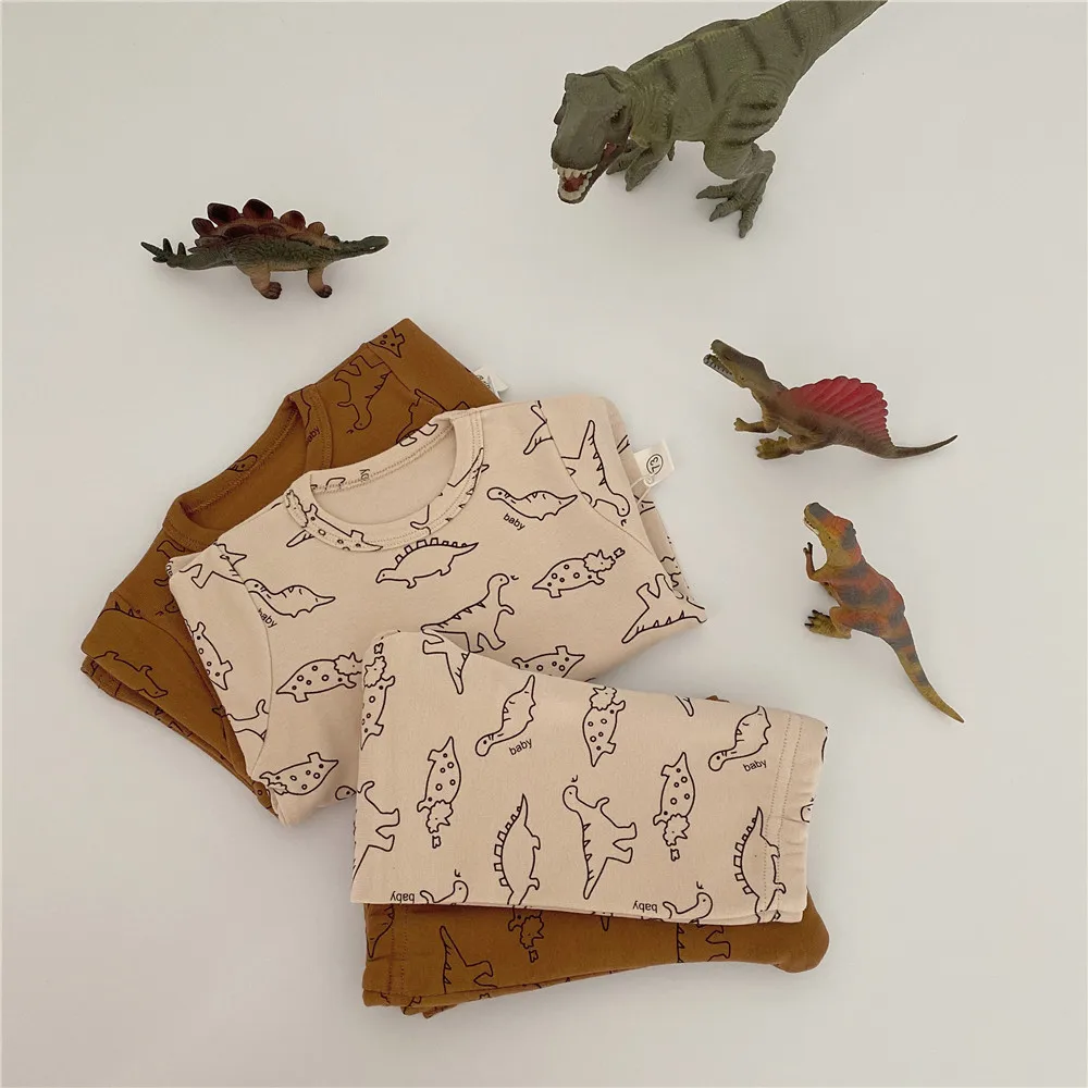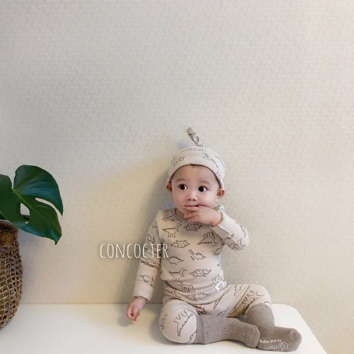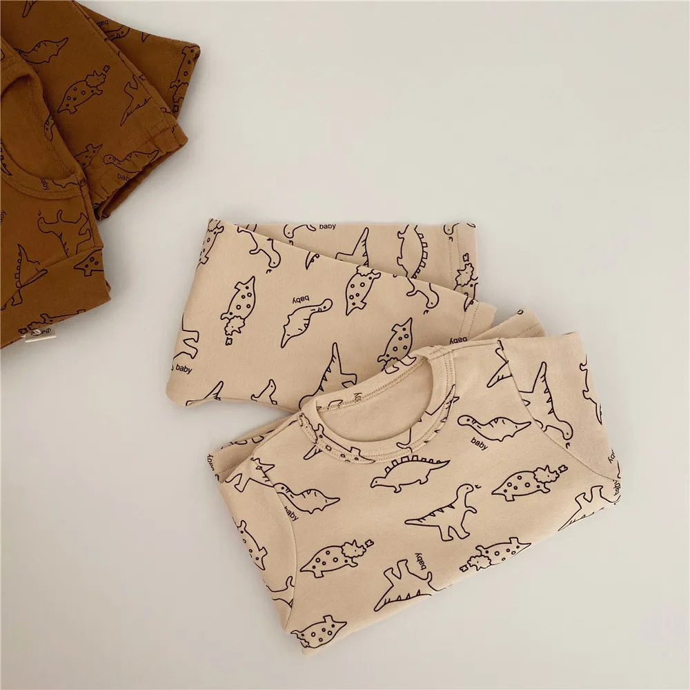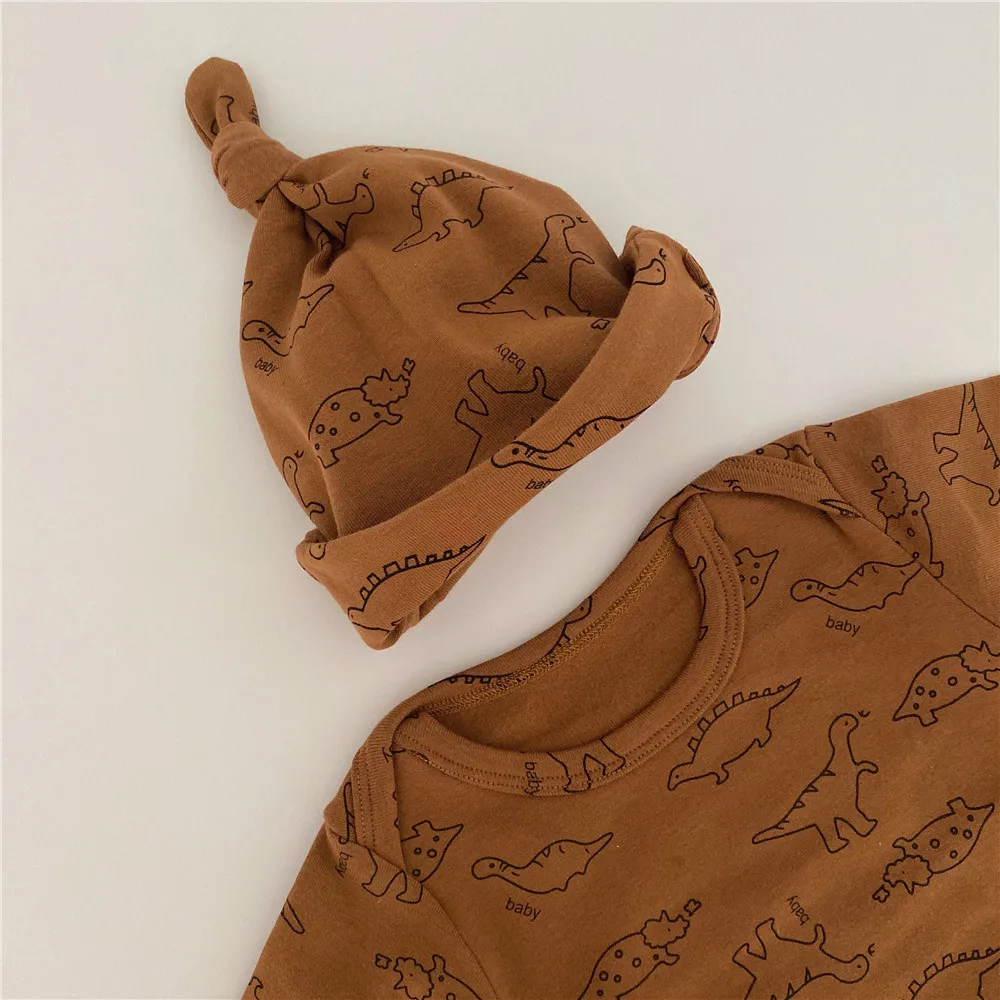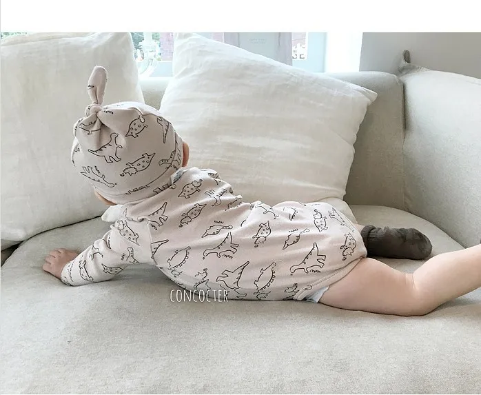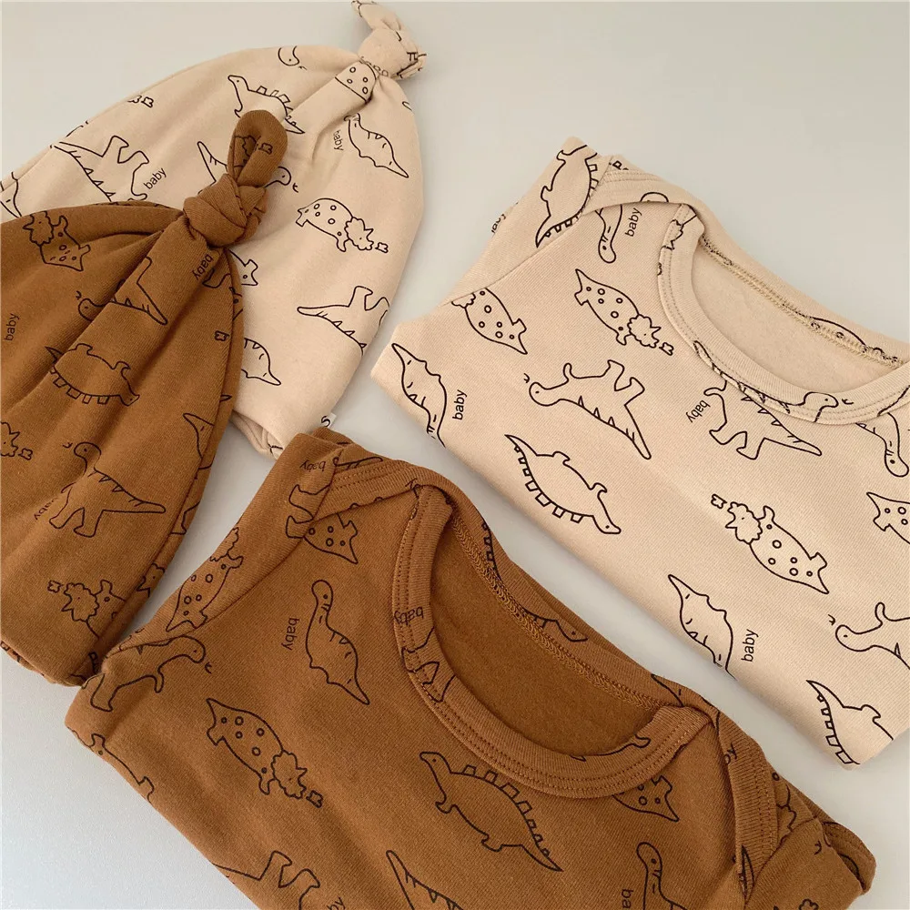 Детский костюм с динозавром и круглым вырезом с изображением жимолой и вишенок Домашняя одежда с героями мультфильмов комбинезон + шляпа для маленьких девочек комплект одежды для маленьких мальчиков