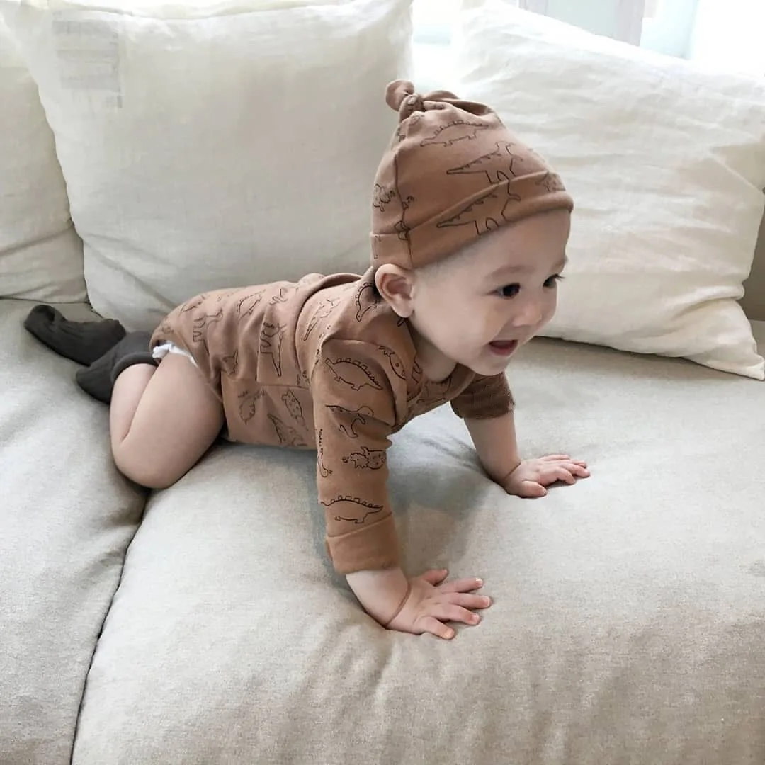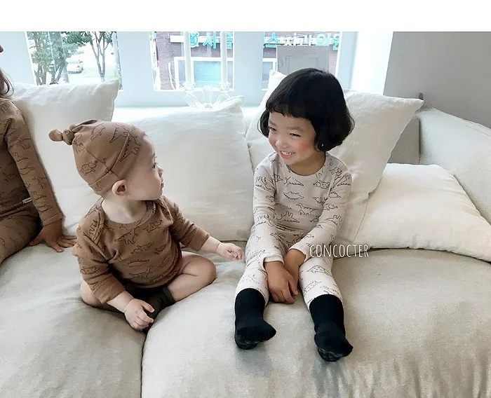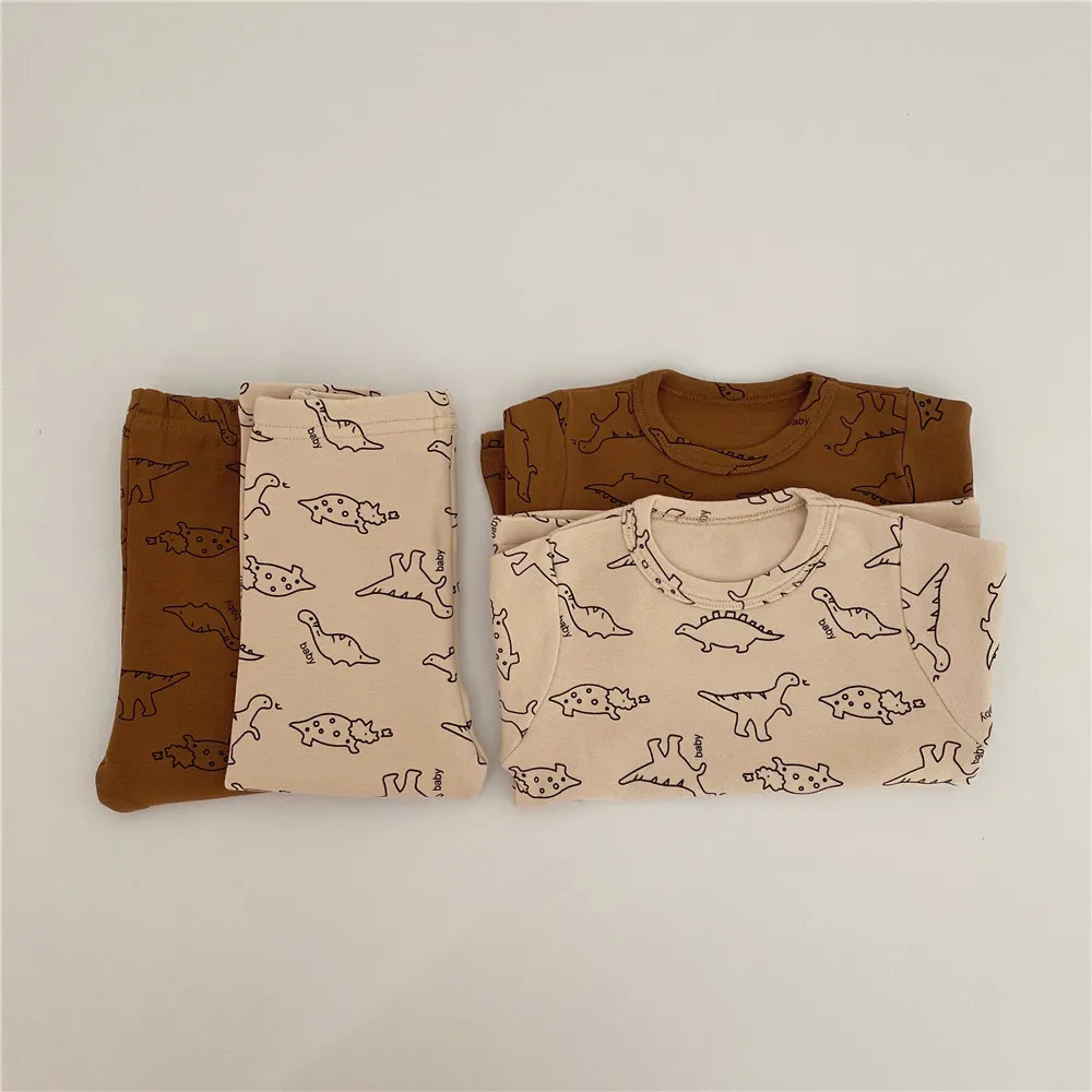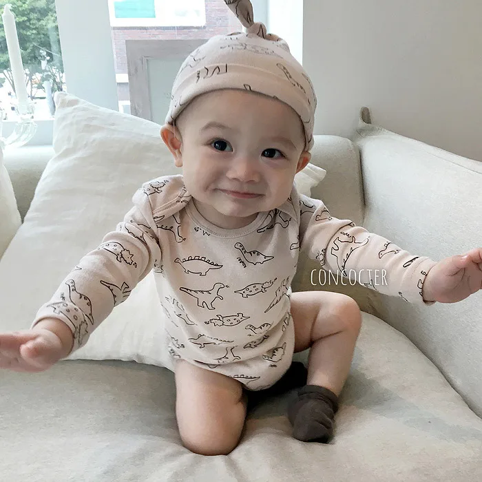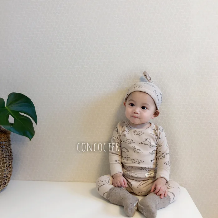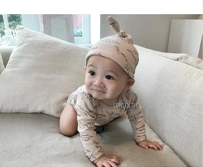 Детский костюм с динозавром и круглым вырезом с изображением жимолой и вишенок Домашняя одежда с героями мультфильмов комбинезон + шляпа для маленьких девочек комплект одежды для маленьких мальчиков